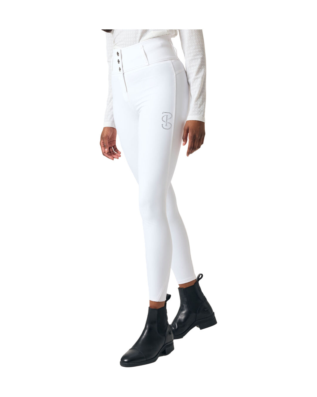 Der extra breite Bund mit Haken- und Ösenverschluss sorgt für eine stabile Passform und hohen Tragekomfort, während der elastische Beinabschluss für einen nahtlosen Übergang in den Stiefel sorgt. Der glatte, tonale Full Grip-Besatz mit PS-Monogramm gibt dir optimalen Halt im Sattel, ohne deine Bewegungsfreiheit einzuschränken. Abgerundet wird das Design durch ein elegantes Logo mit funkelnden Kristallen – ein dezenter Hingucker, der die edle Optik unterstreicht.