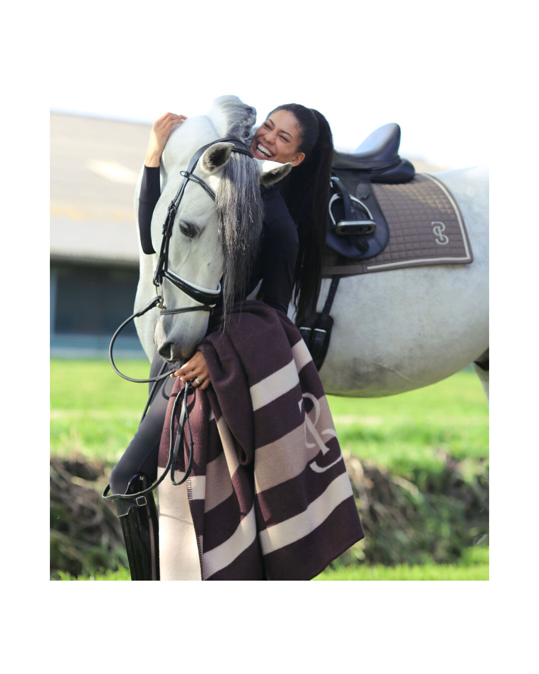 Mit ihrem zeitlosen Streifendesign und dem eingewebten PS-Monogramm ist sie nicht nur ein praktischer Begleiter an kalten Stalltagen oder beim Zuschauen am Reitplatz, sondern auch ein elegantes Accessoire für Sofa oder Schlafzimmer.