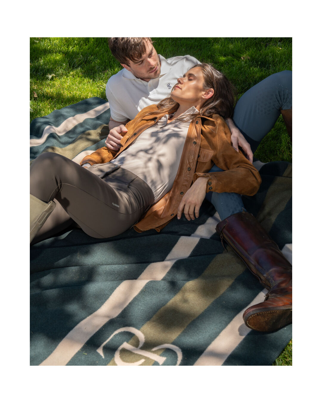 Mit ihrem zeitlosen Streifendesign und dem eingewebten PS-Monogramm ist sie nicht nur ein praktischer Begleiter an kalten Stalltagen oder beim Zuschauen am Reitplatz, sondern auch ein elegantes Accessoire für Sofa oder Schlafzimmer.