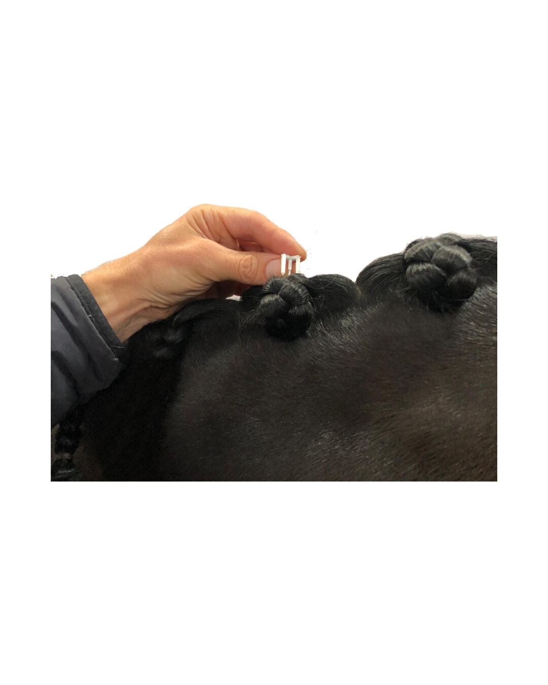 Mit dem Quick Knot® Deluxe wird das Frisieren Ihres Ponys oder Pferdes zum Kinderspiel! Der innovative Helfer ermöglicht es deines, im Handumdrehen perfekte Knoten zu zaubern, ohne dass Sie sich dabei die Finger verknoten müssen. Das Geheimnis des Quick Knot® Deluxe liegt in seiner einfachen Handhabung. Sie machen einen Zopf, rollen ihn auf und stecken den Stift durch - schon sitzt der Knoten perfekt. Durch die spezielle Spitze halten sie den Knoten sicher fest und mit den 3 Armen bleiben die Stifte noch besser in der Mähne. Der Quick Knot Deluxe ist aus hochwertigem Kunststoff und Metall gefertigt, so dass er öfters verwendet werden kann. Ein weiterer Vorteil des Quick Knots ist, dass er sich sehr leicht aus den Knoten herausnehmen lässt. Einfach gerade biegen und den Clip über dem Knoten herausziehen - schon ist der Knoten gelöst! Das spart viel Zeit sowohl beim Flechten als auch beim Herausnehmen der Knoten.