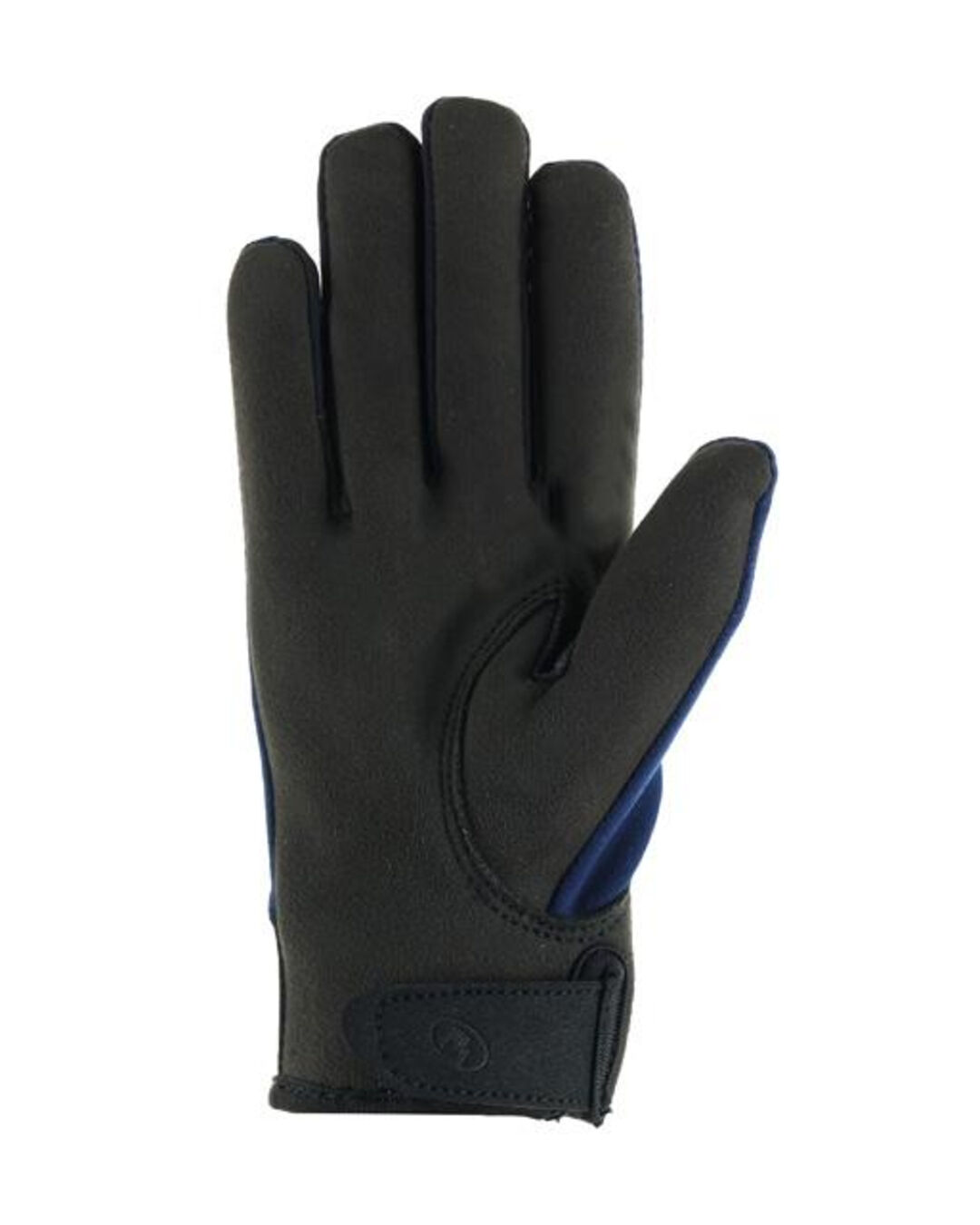 Dieses Material ist besonders strapazierfähig und dünn, sodass der Kontakt zum Pferdemaul nicht verloren geht und eine feine Zügelführung erhalten bleibt. Um die Handschuhe fest zu verschließen, ist ein Riemen mit Klettverschluss vorhanden. Glitzernde Details machen den Handschuh zu einem echten Hingucker und lassen ihn funkeln.