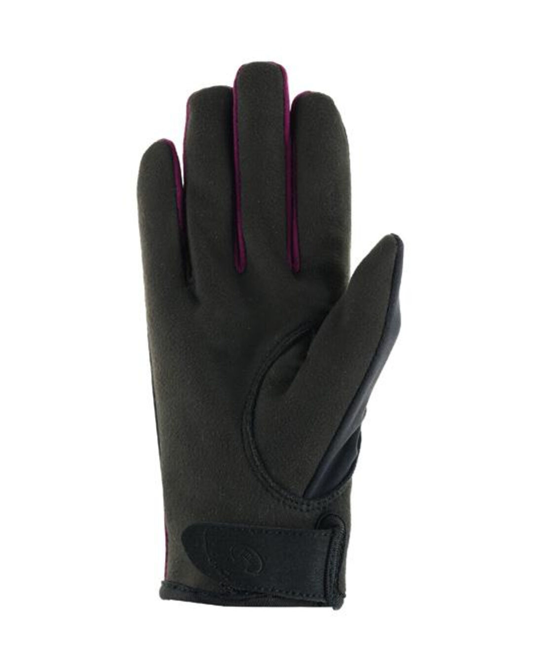 Dieses Material ist besonders strapazierfähig und dünn, sodass der Kontakt zum Pferdemaul nicht verloren geht und eine feine Zügelführung erhalten bleibt. Um die Handschuhe fest zu verschließen, ist ein Riemen mit Klettverschluss vorhanden. Glitzernde Details machen den Handschuh zu einem echten Hingucker und lassen ihn funkeln.