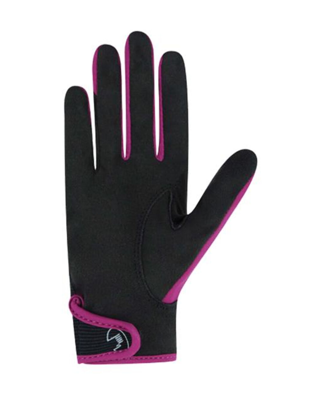 Die Innenhand aus besonders weichem, aber strapazierfähigem DURASENSE Synthetiksuede gewährleistet einen sicheren Griff am Zügel, ohne dass die wichtige Sensibilität für die Verbindung zum Pferdemaul verloren geht. Ein dezenter Klettriegel am Handgelenk sorgt für einen perfekten Sitz und Rundumkomfort.