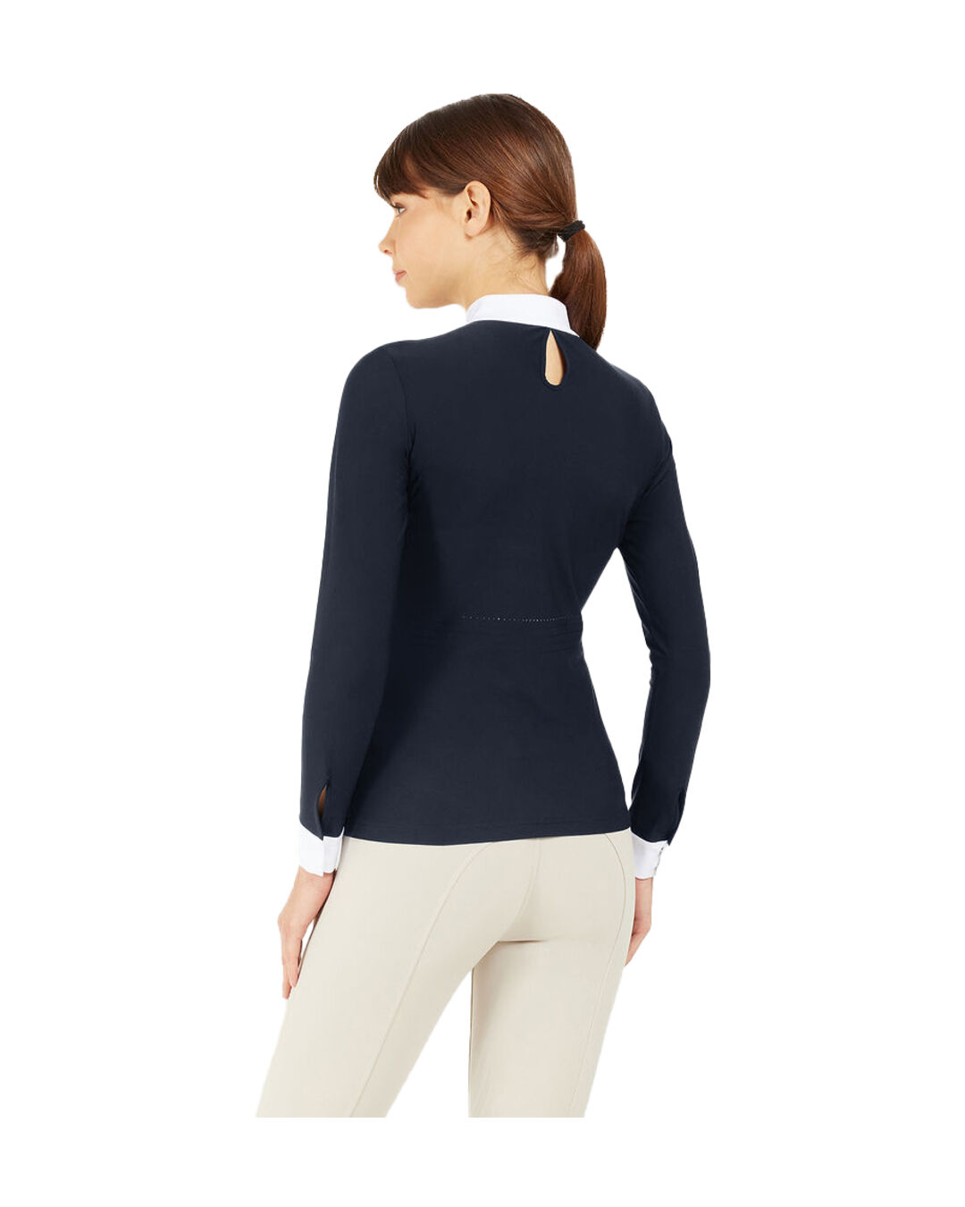 Gefertigt aus atmungsaktivem Vier-Wege-Stretch-Material, bietet es optimale Bewegungsfreiheit und höchsten Komfort – perfekt für anspruchsvolle Reiterinnen im Sattel oder bei Turnierauftritten.