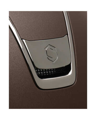 Die Außenschale besteht aus robustem Polycarbonat – einem Material, das auch bei hochwertigen Motorradhelmen zum Einsatz kommt – und ist mit einer matten, kratzfesten Lackierung veredelt. Innen sorgt eine Polystyrolschale mit variabler Dichte dafür, dass im Falle eines Sturzes die entstehende Aufprallenergie optimal abgefangen wird.