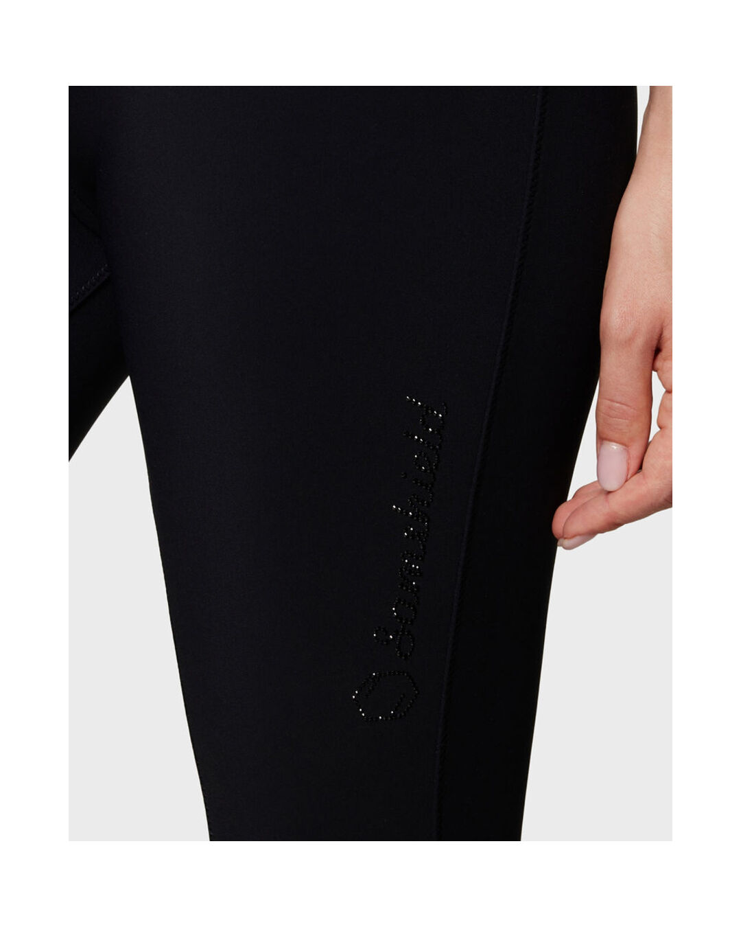 Der mit Silikon verstärkte Bund verhindert das Herausrutschen des Oberteils, sodass du dich voll und ganz auf dein Reiterlebnis konzentrieren kannst. Praktische Reißverschlusstaschen vorne bieten Platz für deine wichtigsten Utensilien. Die eleganten Swarovski-Applikationen und das funkelnde Logo machen die Hose zu einem echten Blickfang.