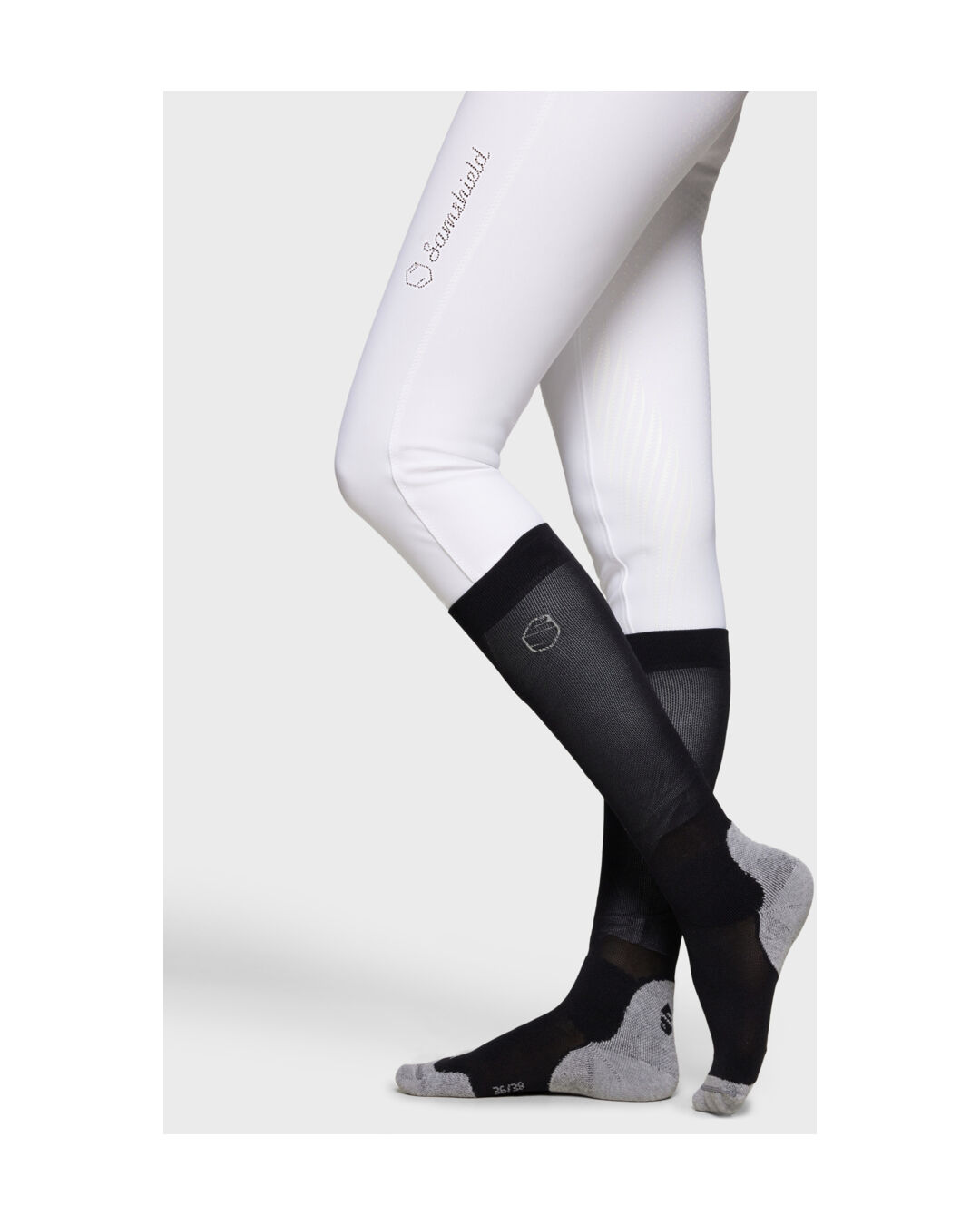 Die Balzane Soft Glitter Reitstrümpfe von Samshield sind speziell darauf ausgelegt, deinwn Blutfluss anzuregen und so die Regeneration der Muskeln sowie die Leistungsfähigkeit zu fördern.