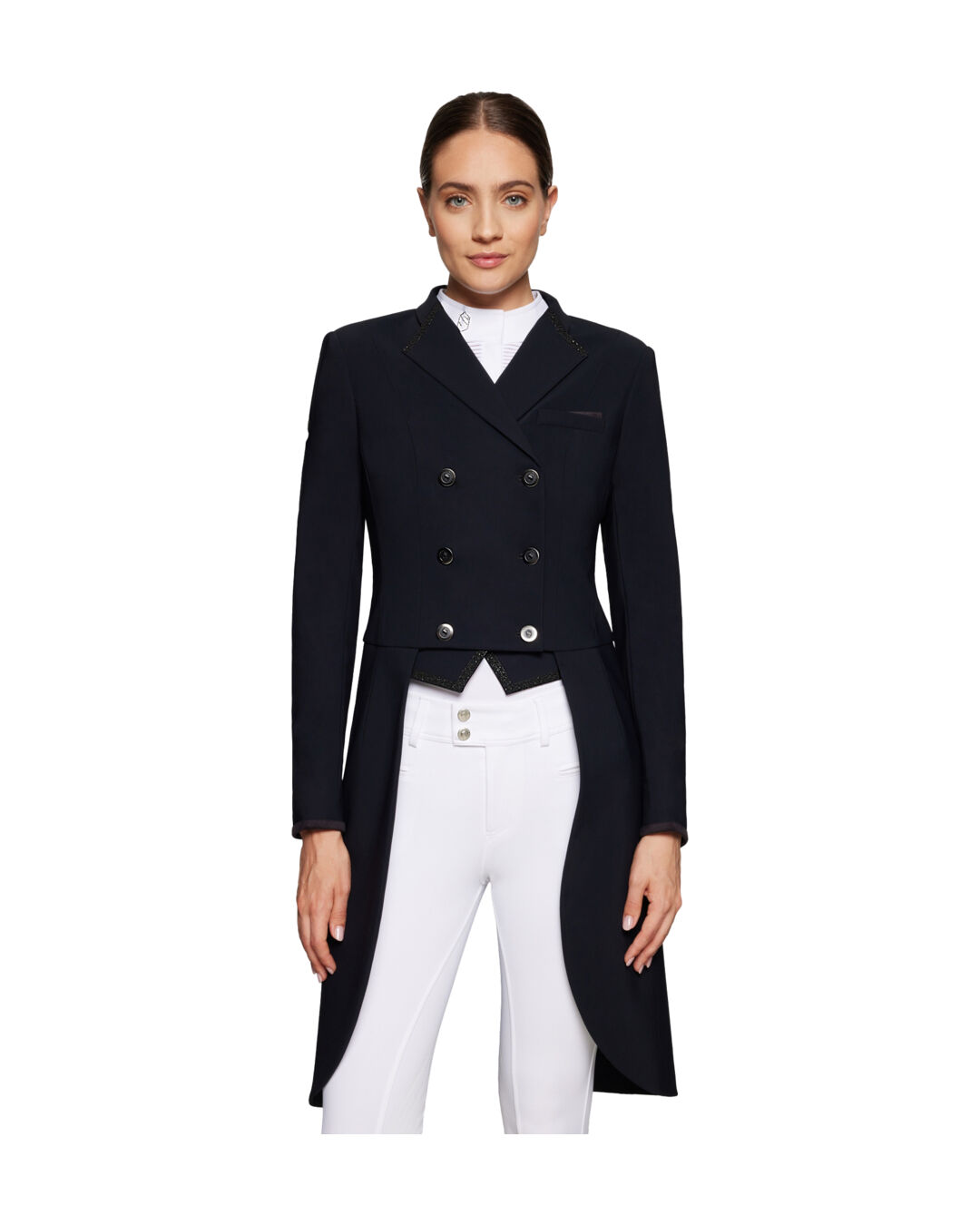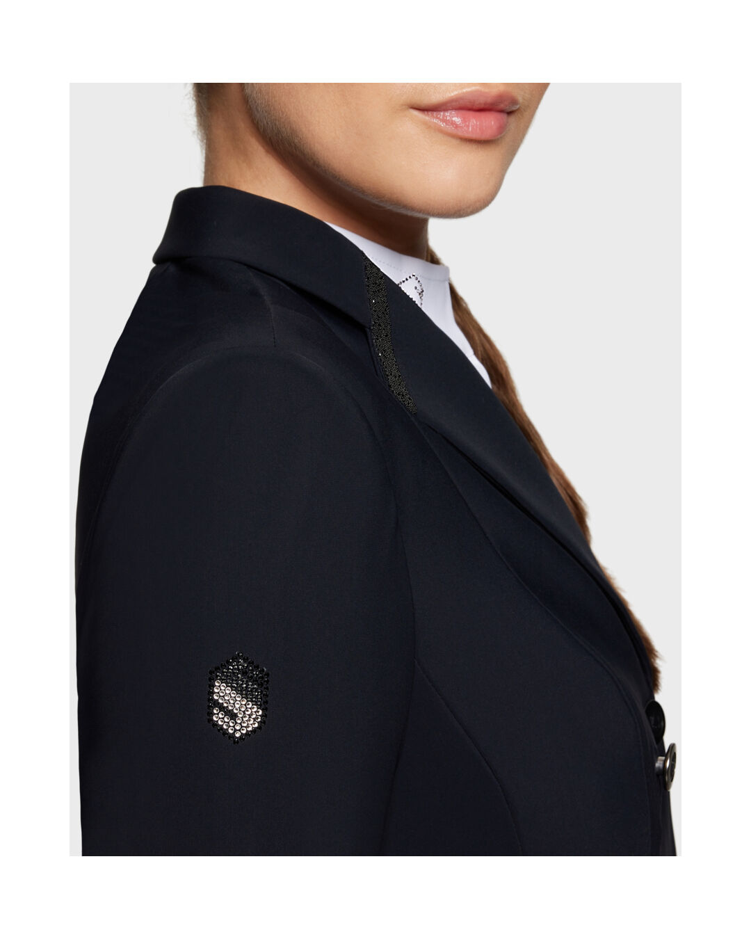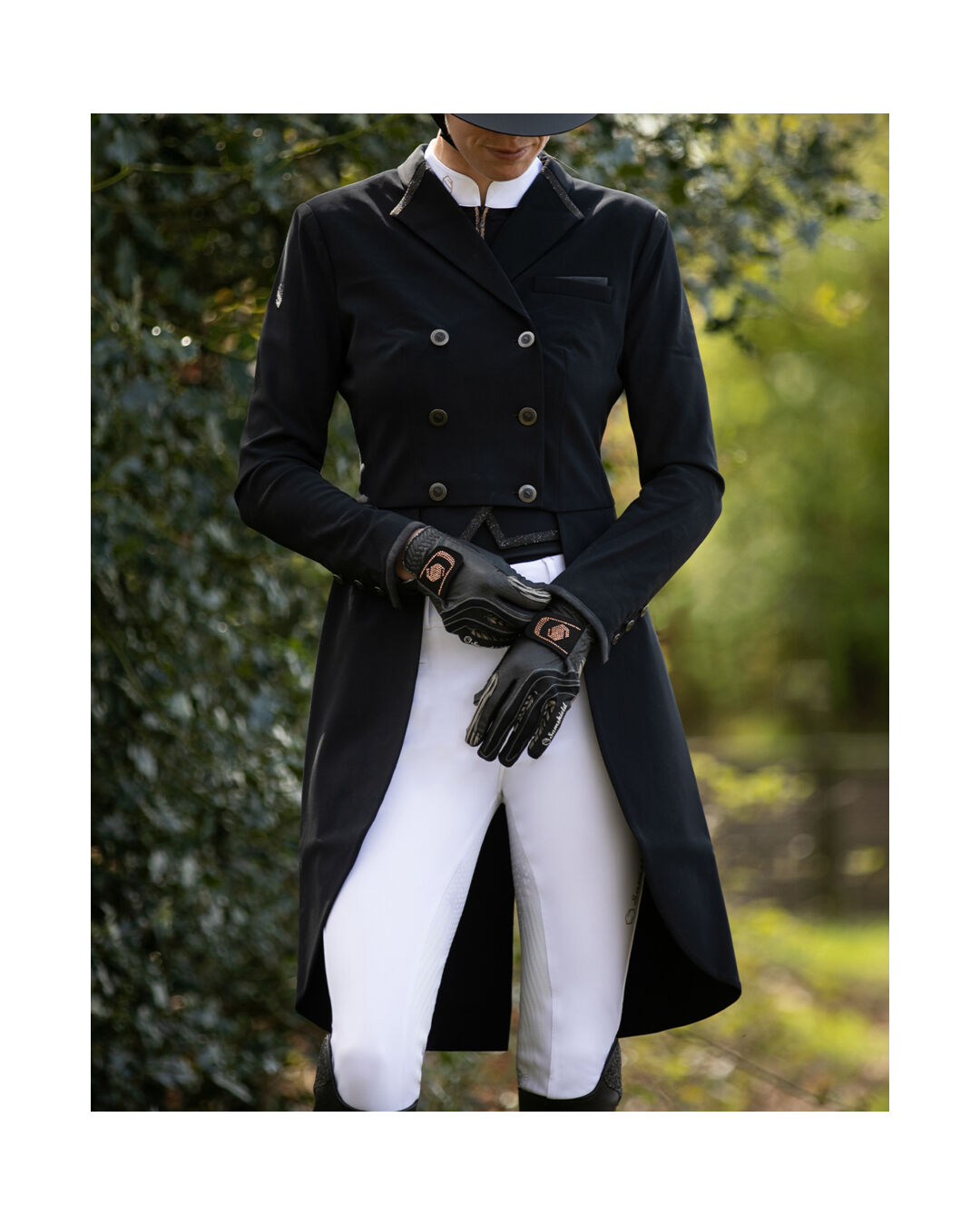 Das TurniersakkoFrack Crystal Fabric von Samshield ist die perfekte Kombination aus technischer Funktionalität und luxuriösem Design für die Dressur. Gefertigt aus atmungsaktivem und elastischem Stoff, bietet er höchsten Tragekomfort und maximale Bewegungsfreiheit im Viereck.
