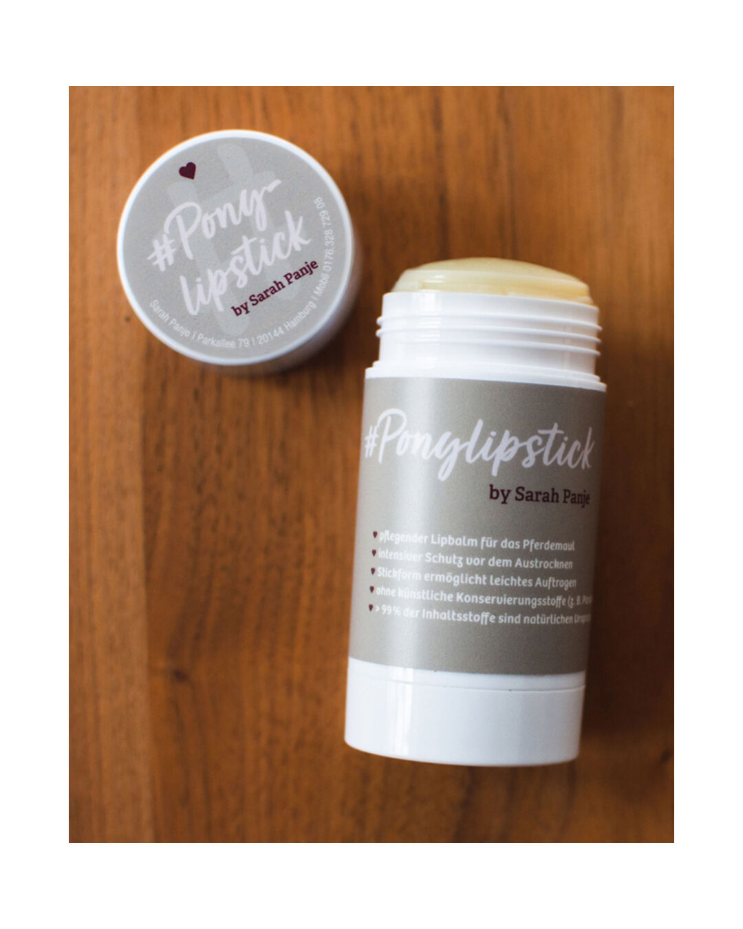 Der Ponylipstick ist der ideale Lipbalm für Pferde, um das empfindliche Maul zu pflegen und spröde Hautstellen weich und geschmeidig zu halten. Mit seinen rein natürlichen Inhaltsstoffen, wie Shea Butter, wird das Pferdemaul optimal gepflegt und geschützt. Der Ponylipstick bildet eine schützende Gleitschicht im Maul, wodurch das Gebiss angenehmer im Maul liegt. Die praktische Stickform ermöglicht ein einfaches Auftragen ohne schmierige Finger. Gönnen Sie Ihrem Pferd die optimale Pflege mit dem Ponylipstick!