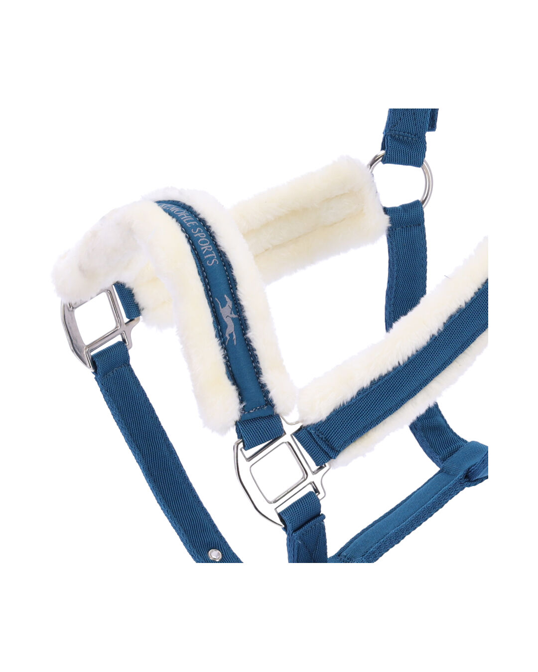 Dieses super softe Halfter aus Softnylon bietet nicht nur eine hohe Strapazierfähigkeit, sondern auch den nötigen „Kuschelfaktor“ für dein Pferd. Kopfstück, Backenstück und Nasenriemen sind mit weichem Fellimitat unterfüttert, was für zusätzlichen Komfort sorgt. Das Logo-Weblabel auf dem Nasenband verleiht dem Halfter einen schicken Look, der sich sehen lassen kann.