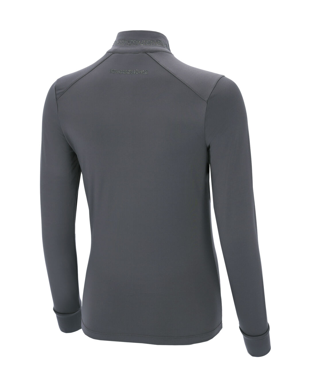 Feine Strassdetails verleihen dem Shirt das gewisse Etwas: ein schimmerndes Pferdelogo auf der Brust und am Ärmel sowie ein Strassstein-Logo im Rückenbereich machen dieses Trainingsshirt zum sportlich-glamourösen Highlight deines Reitoutfits.