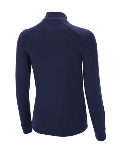 Das Funktionsmaterial sorgt mit perforierten Einsätzen am Rücken und an den unteren Ärmeln für optimale Luftzirkulation – selbst bei intensiven Trainingseinheiten oder an wärmeren Tagen. Der feminine Schnitt mit elegantem Stehkragen betont die Silhouette und sorgt gleichzeitig für ein angenehmes Tragegefühl.