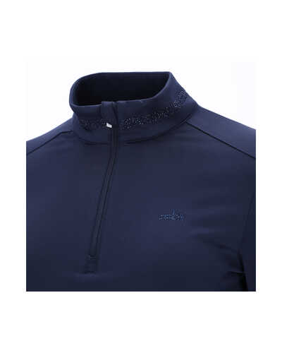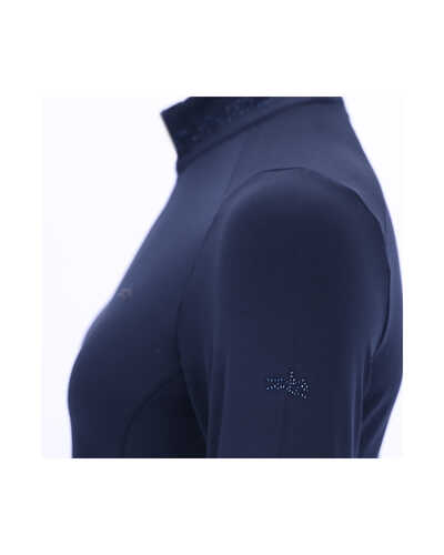Feine Strassdetails verleihen dem Shirt das gewisse Etwas: ein schimmerndes Pferdelogo auf der Brust und am Ärmel sowie ein Strassstein-Logo im Rückenbereich machen dieses Trainingsshirt zum sportlich-glamourösen Highlight deines Reitoutfits.