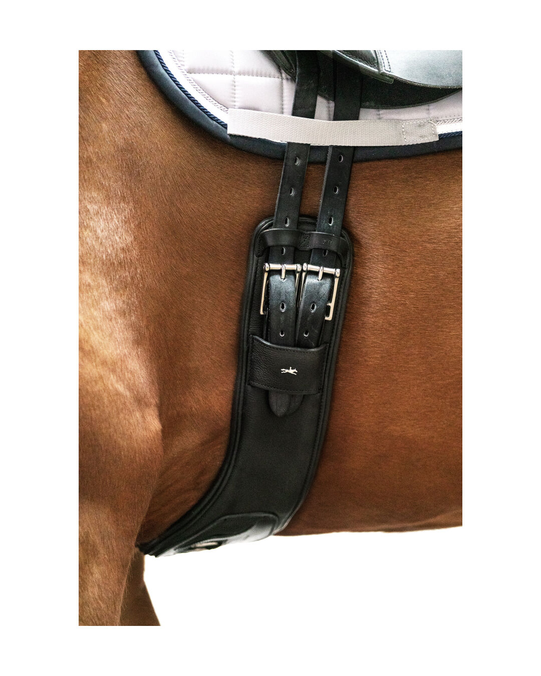 - Anatomischer Kurzgurt aus hochwertigem genarbtem Softleder mit beidseitigem Elastik für maximale Bewegungsfreiheit des Pferdes