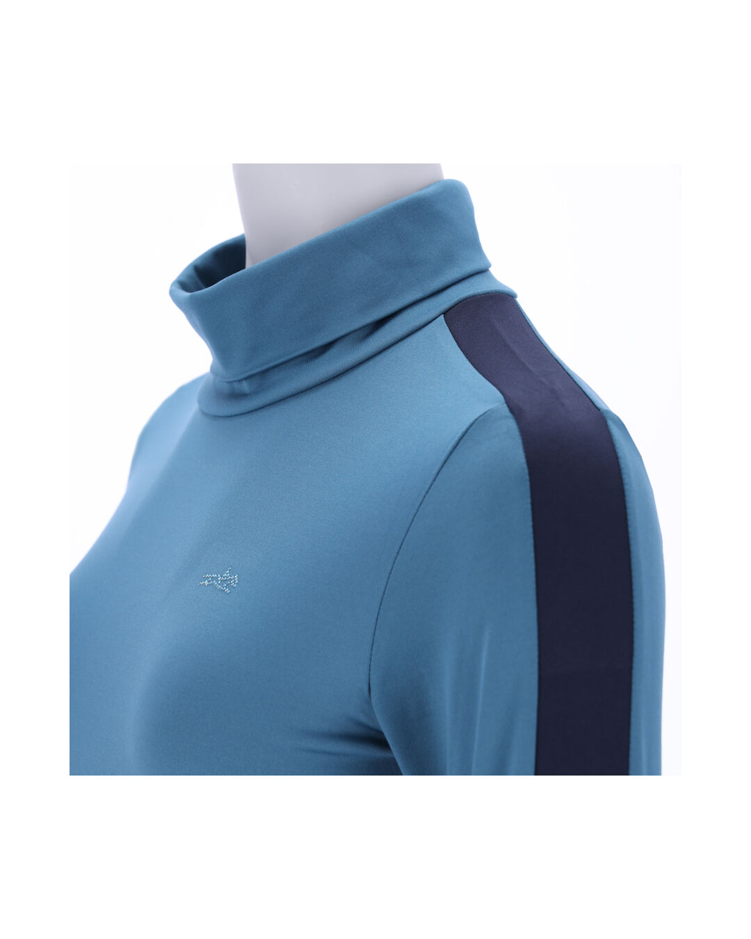 Dieses funktionale Damen-Rollkragenshirt besticht durch lange Ärmel und Kontraststreifen an Schulter und Ärmeln, die einen sportlich-eleganten Look schaffen. Das Logo-Strass-Motiv im Brustbereich und im Rücken verleiht dem Shirt eine exklusive Note und unterstreicht deinen individuellen Stil. Das hochwertige Material sorgt für optimalen Tragekomfort und Bewegungsfreiheit, während die schnelltrocknenden und atmungsaktiven Eigenschaften das Shirt besonders praktisch machen.
