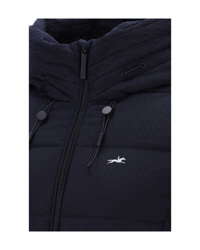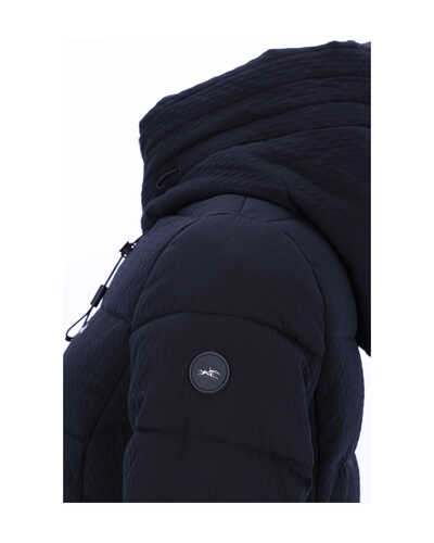 Tonal abgestimmte Paspeln an der Vorderseite und an den Taschen sorgen für einen dezenten, eleganten Look. Elastische Ärmelbündchen mit Elasthan-Anteil halten Wind ab und garantieren einen angenehmen Sitz. Die verstellbare Kapuze mit breiter Blende lässt sich bei Bedarf mit einem Druckknopf fixieren – ideal bei Wind und Wetter.