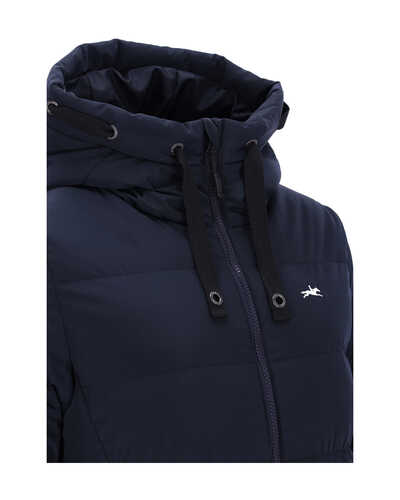 Der 2-Wege-Reißverschluss mit sportlichem Logo-Zipper erlaubt volle Bewegungsfreiheit im Sattel, während der lange, verdeckte Reißverschluss an der hinteren Mitte für zusätzlichen Komfort beim Reiten sorgt. Die verstellbare Kapuze mit breiter Blende, Kordeldurchzug und Ösen passt sich jeder Situation an und schützt zuverlässig vor Wind.