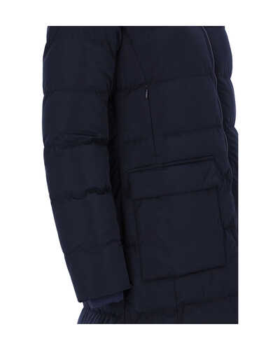 Weiche Jerseymanschetten an den Ärmeln halten die Wärme am Körper, während eine feine Logo-Stickerei und ein Rubber-Badge dezente Markenakzente setzen.