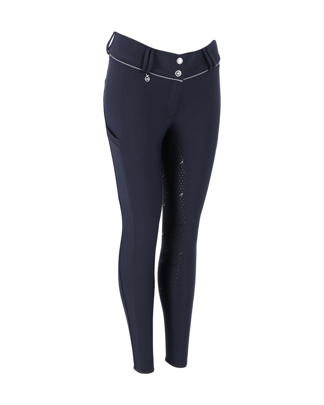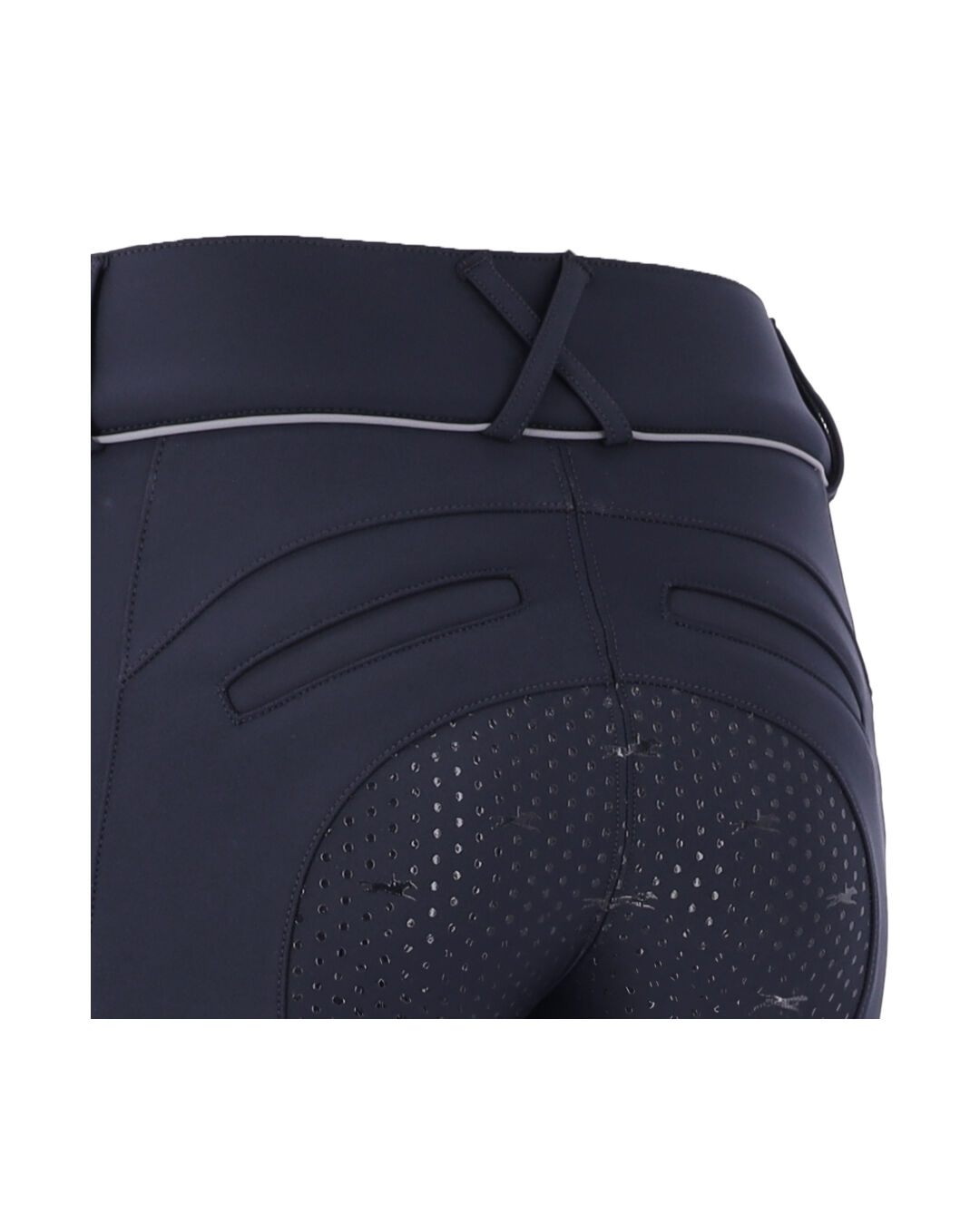 Diese feminine Winter-Reithose ist aus besonders weichem Material gefertigt und innen angeraut, um angenehme Wärme und ein luxuriöses Tragegefühl zu bieten. Der Vollbesatz mit Silikon Print sorgt für optimalen Halt im Sattel, während die Paspel am Bund einen eleganten Akzent setzt.