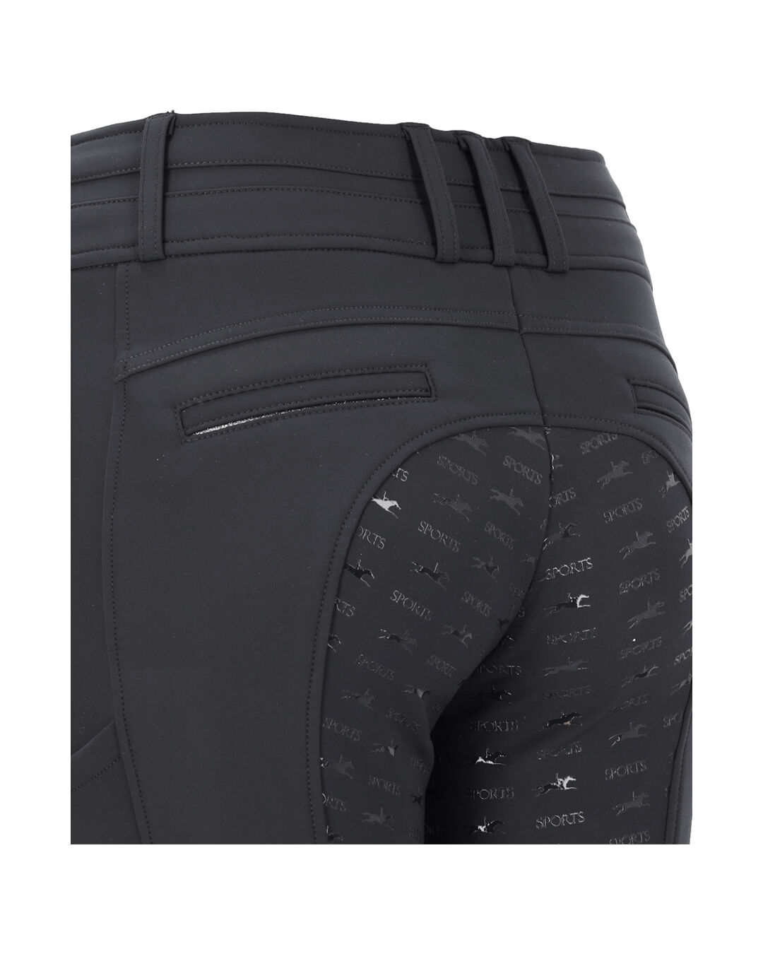Das weiche, elastische Thermo-Material bietet dir viel Bewegungsfreiheit und hält gleichzeitig angenehm warm – ideal für Winterausritte und das Training in der Halle. Die Reithose bleibt dabei formstabil und sitzt zuverlässig, ohne auszuleiern. Der Vollbesatz aus rutschfestem Silikon-Print sorgt für optimalen Halt im Sattel, selbst bei schwungvollen Gangarten.