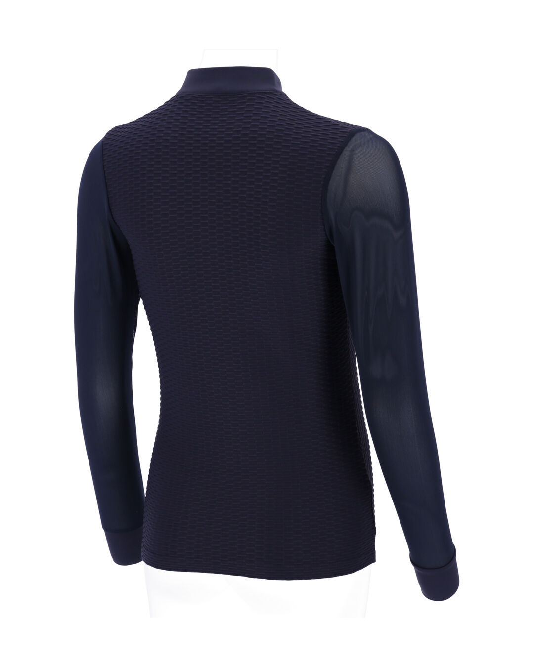Das hochwertige, strukturierte Material sorgt für ein angenehmes Tragegefühl, während die transparente Mesh-Einsätze an den Ärmeln für verbesserte Luftzirkulation und einen modernen Look sorgen. Die 1/1 Ärmel mit Manschette verleihen dem Shirt eine elegante Note und garantieren eine stilvolle Passform.