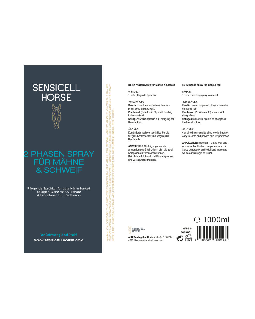Das 2 Phasen Spray für Mähne & Schweif von SENSICELL HORSE bietet intensive Pflege und sorgt für seidigen Glanz, optimale Kämmbarkeit und Farbschutz.