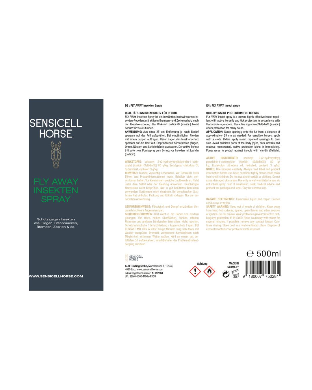 Das Fly Away Insektenspray von SENSICELL HORSE bietet dir und deinem Pferd zuverlässigen Schutz vor lästigen Insekten wie Fliegen, Mücken, Bremsen und Zecken – sowohl im Stall als auch bei Aktivitäten im Freien.