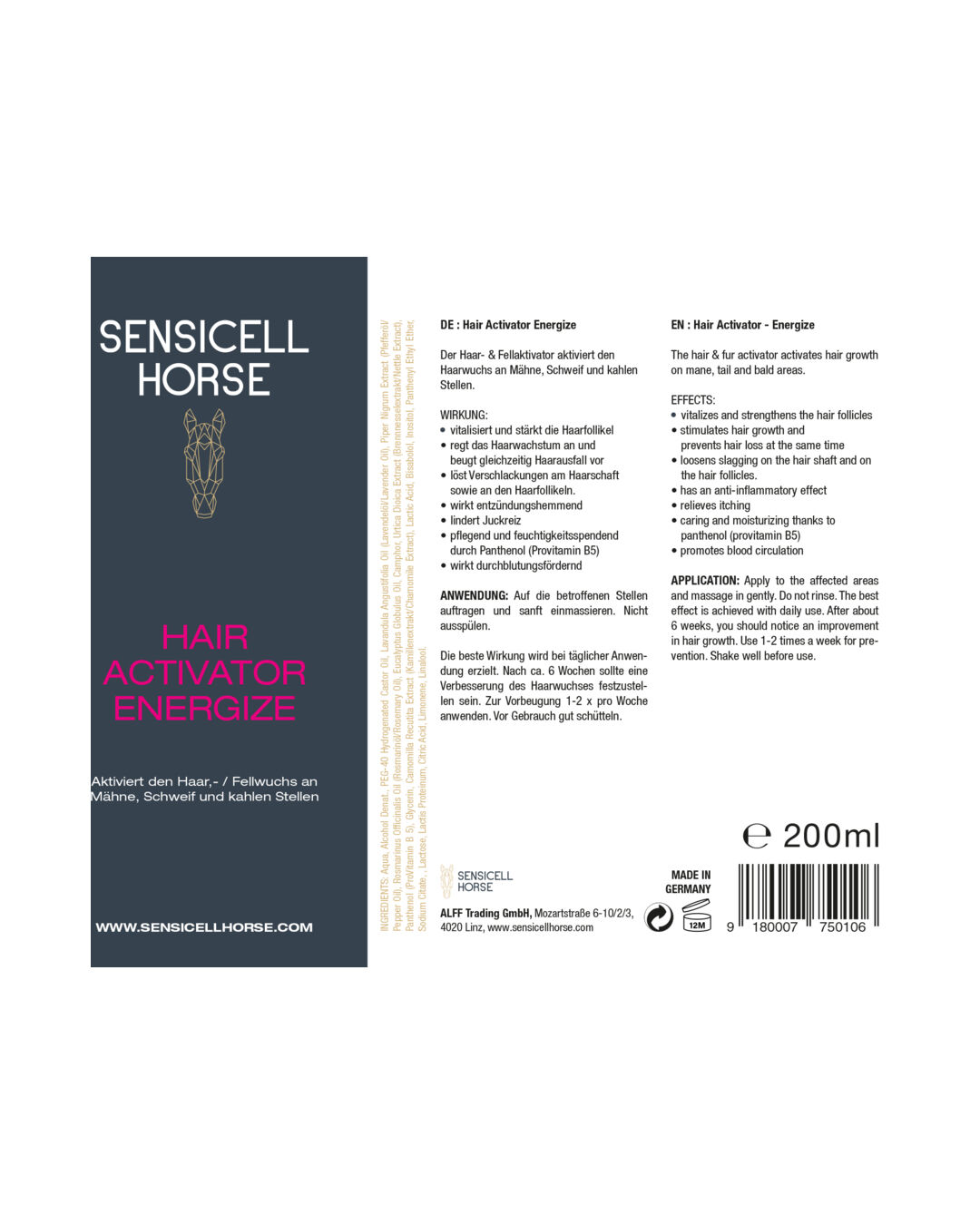 Der Hair Activator Energize von SENSICELL HORSE ist dazu da, um den Fell- und Haarwuchs deines Pferdes zu unterstützen und gleichzeitig Juckreiz zu lindern.