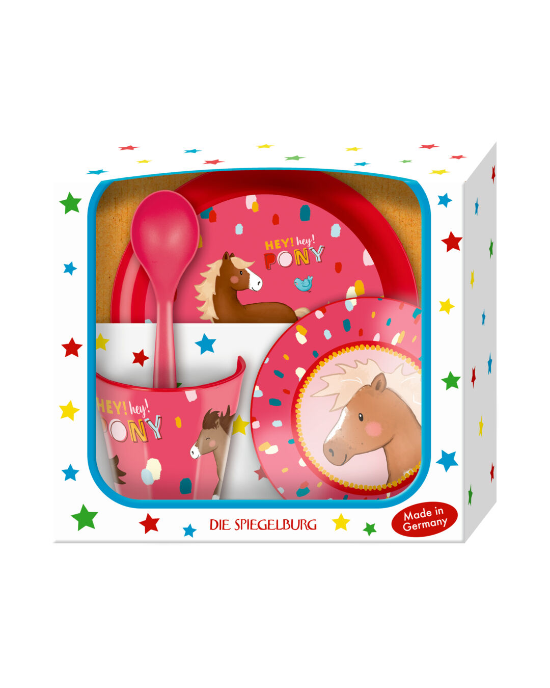Das Spiegelburg Geschirr Geschenkset ist das erste eigene Geschirrset für Kinder und besteht aus einem Löffel, einem Teller, einer Schale und einem Becher - allesamt aus bruchsicherem Material gefertigt. Das Geschirr Geschenkset ist nicht nur hübsch anzusehen, sondern auch äußerst praktisch. Es ist spülmaschinen- und mikrowellengeeignet, sodass du es problemlos in der Maschine reinigen oder in der Mikrowelle aufwärmen kannst. Und das Beste daran: Das Set wird in Deutschland gefertigt, was für eine hohe Qualität und Langlebigkeit spricht.