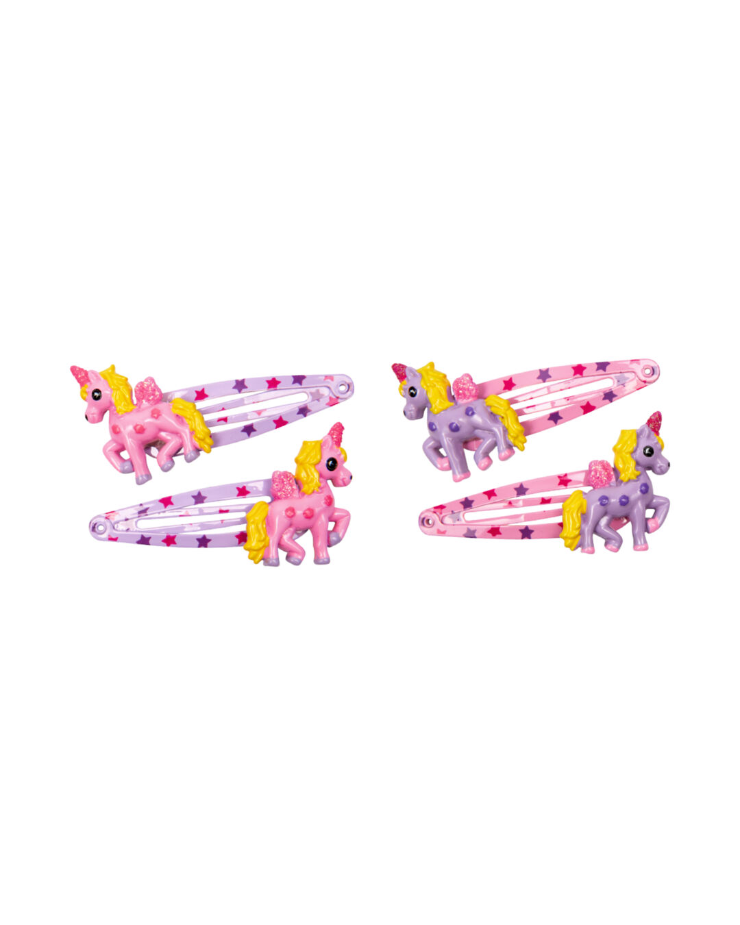 Die Haarclips sind nicht nur ein tolles Mitbringsel für den nächsten Kindergeburtstag, sondern auch ein süßes Accessoire für den Alltag. Ob für die Schule, den Kindergarten oder die nächste Party – die Haarclips sind ein echter Hingucker und verleihen jedem Outfit das gewisse Extra. Das Set besteht aus zwei niedlichen Haarclips mit Glitzerhorn- und -flügeln in zwei unterschiedlichen Designs in den Farben lila oder pink.