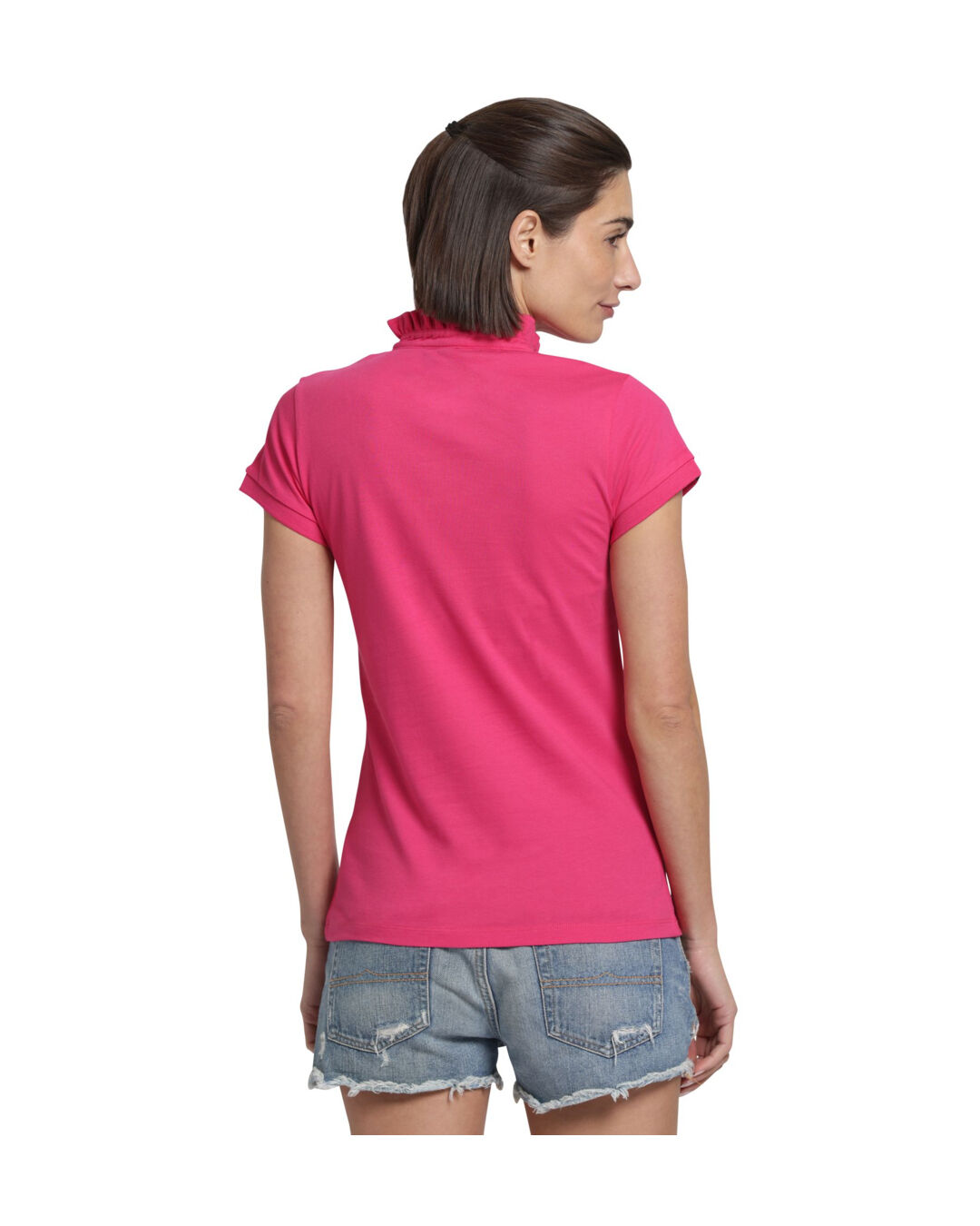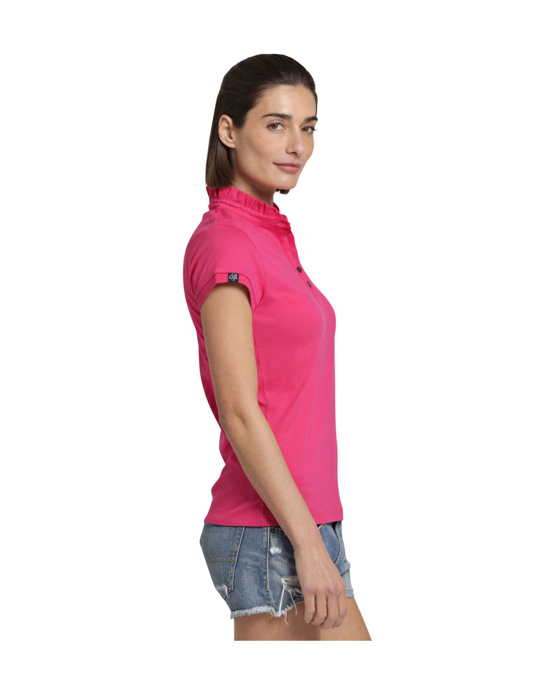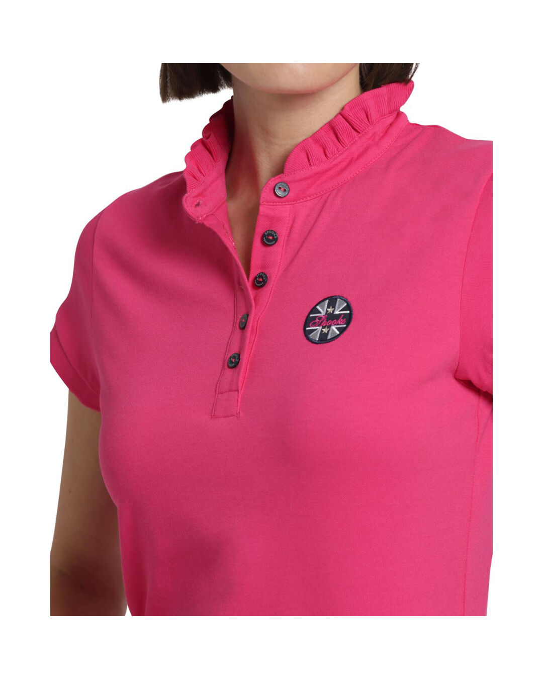 Ein besonderes Highlight ist der Rüschenkragen, der dem Polo einen süßen, edlen Look verleiht. Der klassische Kragen mit Knopfleiste unterstreicht das sportliche Design, während das SPOOKS-Logopatch auf der linken Brust einen dezenten Markenakzent setzt.