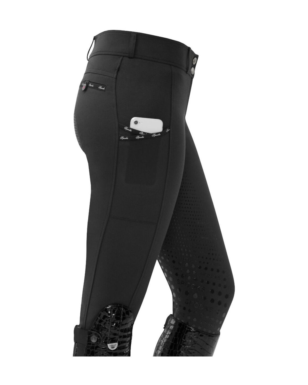 Dein fester Sitz im Sattel wird von dem SPOOKS-Grip an der Reithose unterstützt. Durch das elegante und minimalistische Design ist sie vielseitig kombinierbar und für jeden Anlass geeignet. Die praktische Handytasche am rechten Oberschenkel bietet dir Platz für dein Handy und die Eingrifftasche für Kleinigkeiten wie Geld, Schlüssel oder Leckerlis.