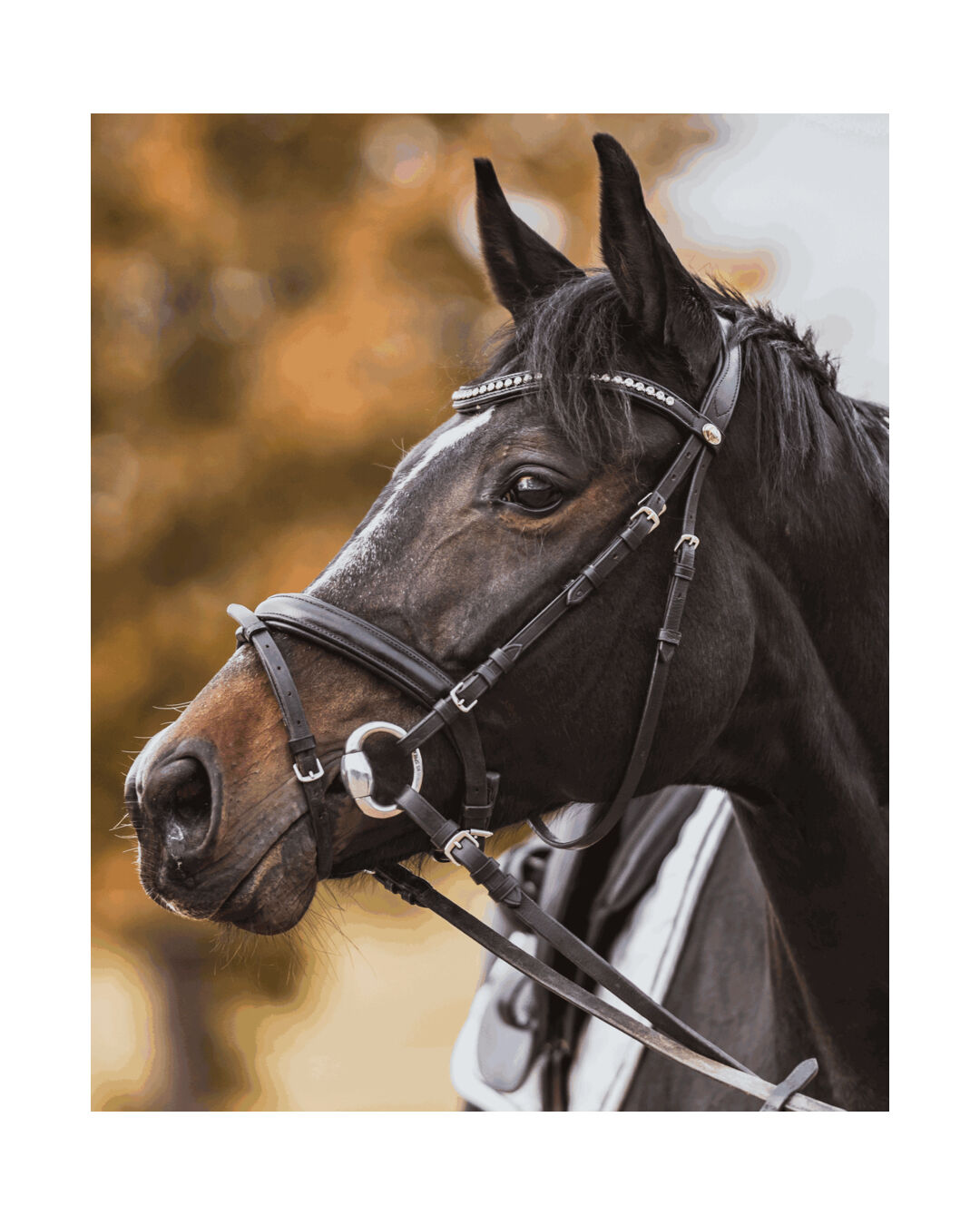 Meine Stute läuft mit dem Gebiss recht gut. Sie ist sensibel, aber mit ihren 1,80 m teilweise schon recht stark. Sie läuft zufrieden und auch am Sprung ist sie gut zu Händeln.