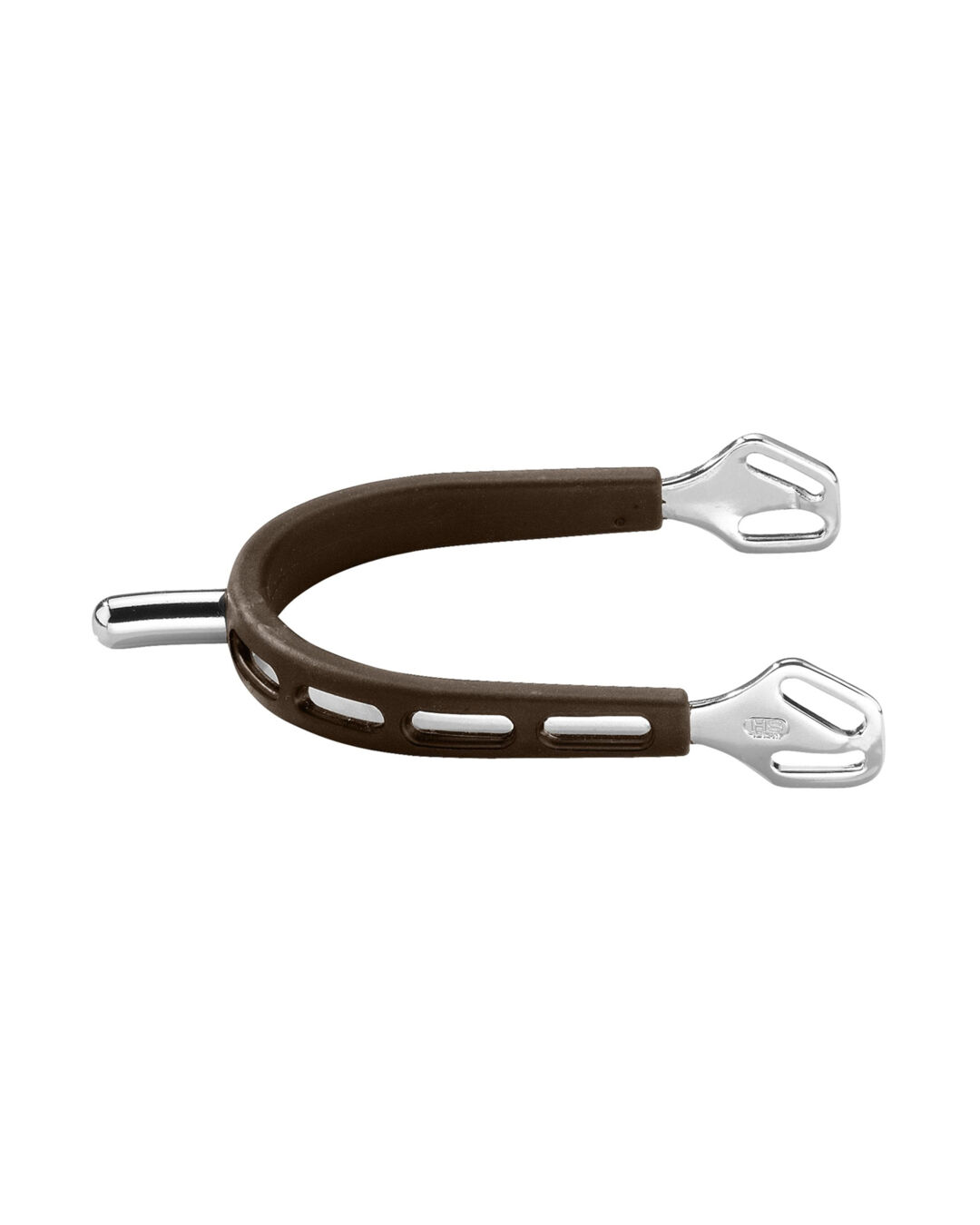 Die Sporen Ultra Fit Braun Grip 25 mm von Sprenger sind ein echter Allrounder, wenn es um Funktionalität und Optik geht. Das abgerundete Halsende ermöglicht eine sanfte Einwirkung, während der Überzug aus dunkelbraunem Weichgummi für einen sicheren Sitz sorgt, das Stiefelleder schont und zugleich einen eleganten Look bietet.