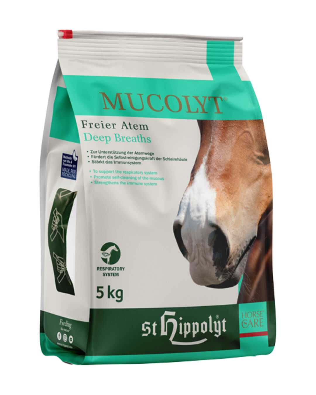 Die Atemwegskur Mucolyt von St. Hippolyt ist eine speziell entwickelte Kräuterkomposition und kann zur Unterstützung der Atemwege und des Immunsystems bei Pferden beitragen.