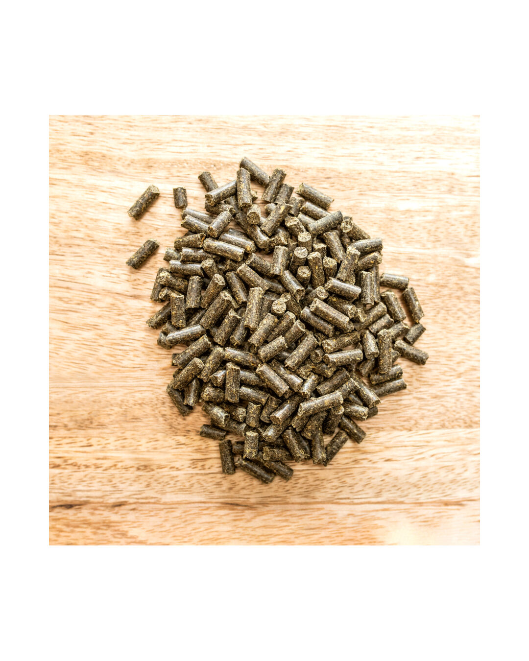 | Fütterungsmenge: | Ca. 40 g je 100 kg Körpergewicht und Tag mit dem Krippenfutter vermischt anbieten. Hinweis: Ab dieser Menge ist keine zusätzliche Mineralisierung notwendig. Für die unterstützende Fütterung genügen ca. 20 g je 100 kg Körpergewicht und Tag. |