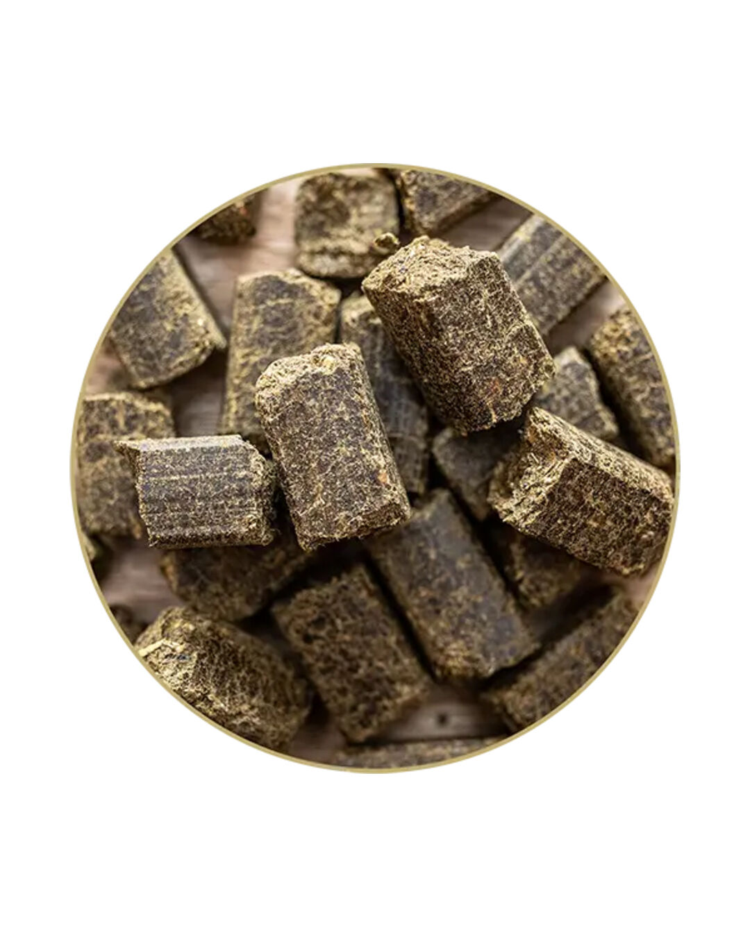 Die Rezeptur ist getreidefrei, stärke- und zuckerreduziert. Gleichzeitig enthalten die Würfel viele natürliche Inhaltsstoffe und punkten mit einer guten Akzeptanz – auch bei wählerischen Fellnasen.