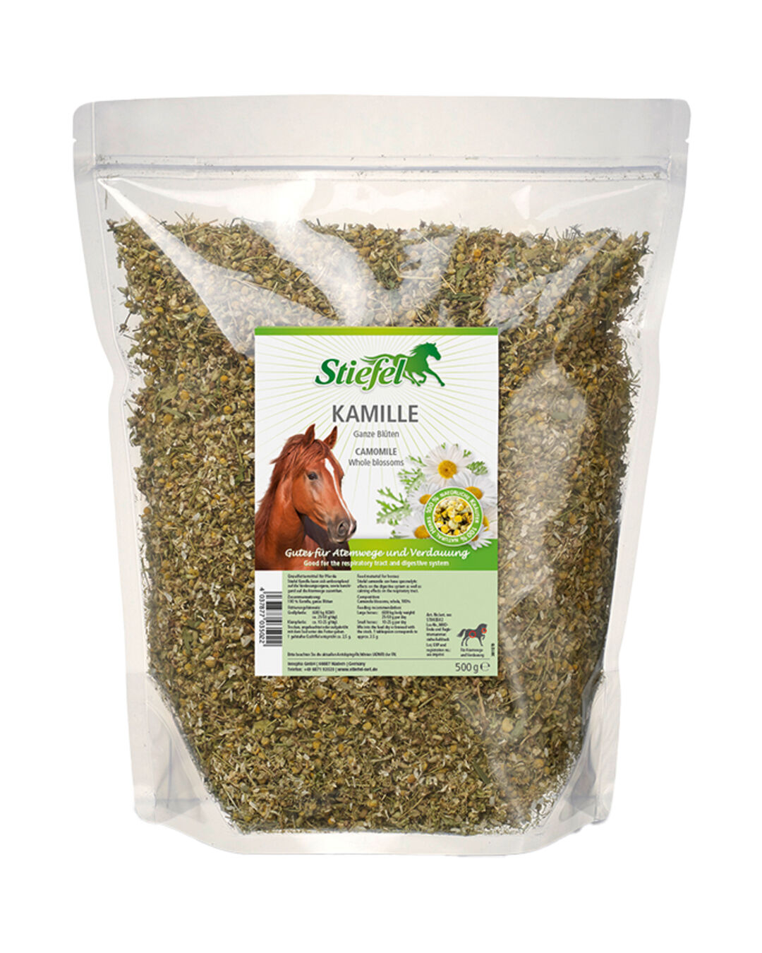 Für die innerliche Anwendung kannst du die Blüten trocken oder aufgebrüht mit dem Sud unter das Futter mischen. Die enthaltenen Wirkstoffe können eine gesunde Verdauung fördern und zur Entspannung beitragen – ideal für Pferde, die in stressigen Situationen empfindlich reagieren. Äußerlich aufgetragen unterstützt die Kamille die Hautpflege und kann zur Optimierung der Hautfunktion beitragen.