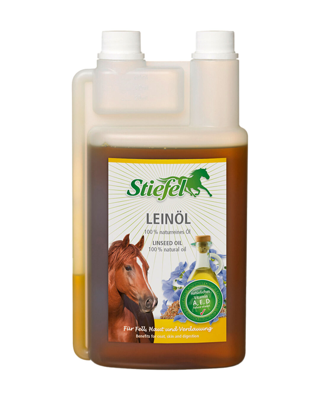 Das Leinöl von Stiefel ist ein 100 % naturreines, kaltgepresstes Öl, das deinem Pferd auf vielfältige Weise zugutekommt. Mit seiner hochwertigen Zusammensetzung kann es die Haut- und Fellgesundheit unterstützen und gleichzeitig eine gesunde Verdauung fördern.