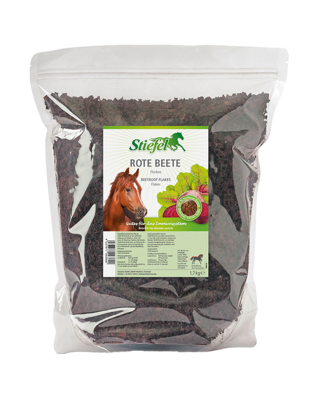 Die Rote Beete Flocken von Stiefel bietet deinem Pferd eine natürliche Ergänzung zur Förderung von Gesundheit und Vitalität.