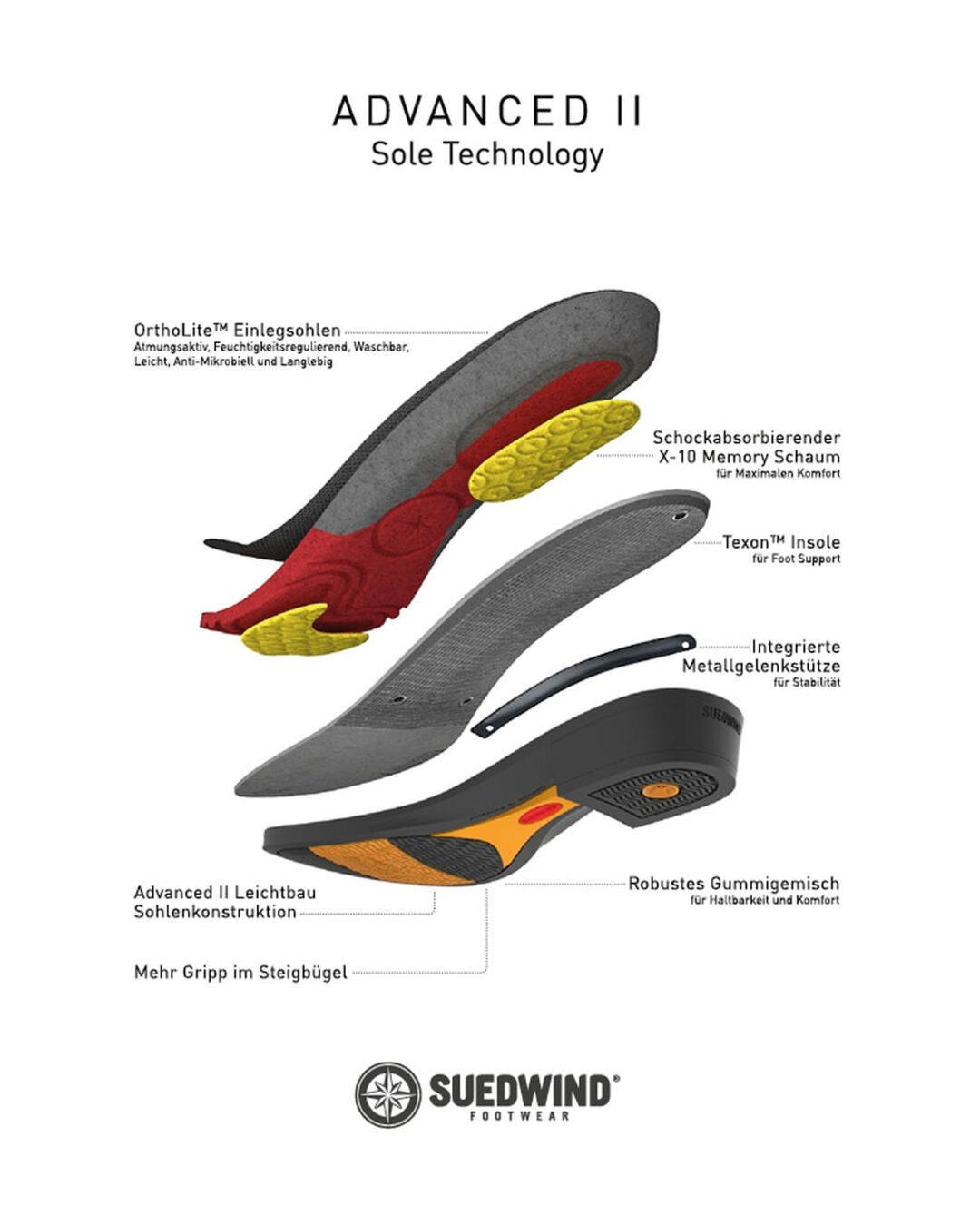 Suedwind Footwear ist eine deutsche Schuhmarke für aktive Outdoor-Menschen, die gerne Zeit mit ihren Pferden und Hunden im Freien verbringen. Suedwind unterstützt Menschen dabei ein erfülltes Leben zu führen und hilft ihnen einen Fußabdruck zu hinterlassen, der andere inspiriert. Als Teil der Gesellschaft glaubt Suedwind Footwear daran, dass eine ausgewogene Work-Life-Balance, bei der wir Zeit im Freien mit unseren liebsten Gefährten verbringen, zu einem glücklicheren und ausgeglicheneren Leben führt. Shoes for a lifetime.