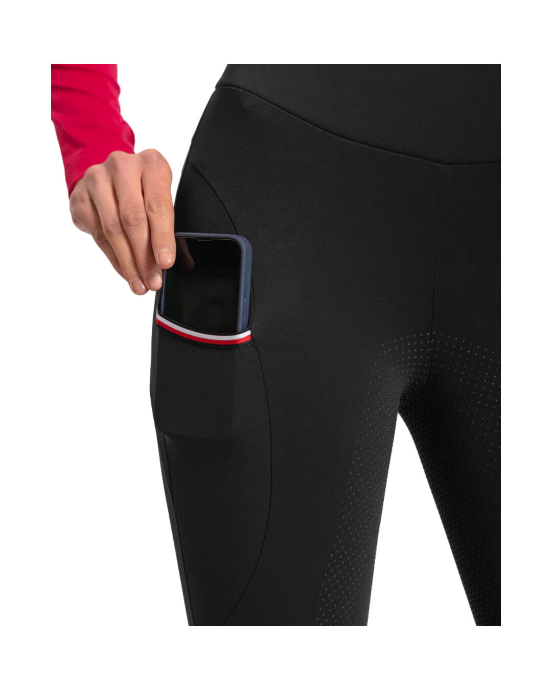 Die sehr elastische Reitleggings hat einen breiten V-förmigem Bund, was für ein angenehmes Gefühl am Bauch sorgt und eine schöne Form verleiht. Eine praktische Handy-Tasche am rechten Oberschenkel und Tommy Hilfiger-Branding am linken Oberschenkel, fallen ins Auge. Das besondere, reaktive Wärmeausgleichsmaterial hat die Eigenschaft, dass sie bei wärmeren Temperaturen Wärme abgibt und bei kühleren Temperaturen Wärme einschließt, damit kannst du dich voll und ganz aufs Reiten konzentrieren.