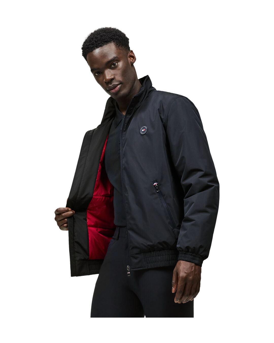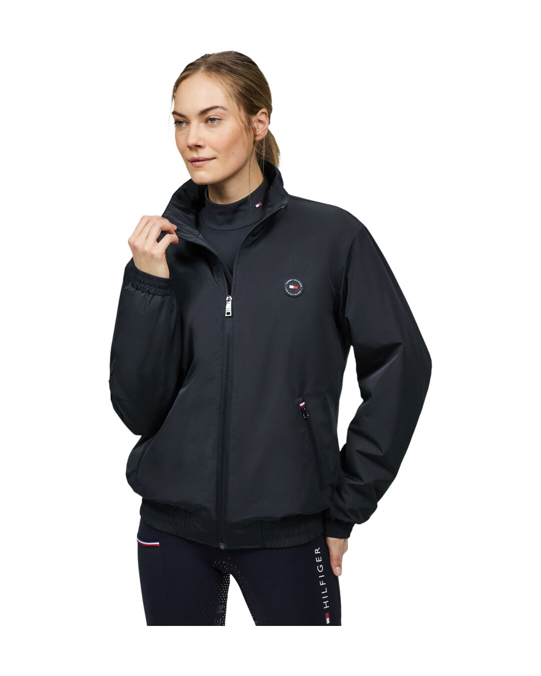 Der vegane, winddichte Stoff schützt dich zuverlässig vor kühlen Böen und macht die Jacke zu einem treuen Begleiter an Übergangstagen oder im Stallalltag. Das gesteppte Design in Bomber-Optik wird durch den typischen TH-Logo-Aufnäher und die Signature-Streifen akzentuiert, die den unverwechselbaren Tommy-Style transportieren.
