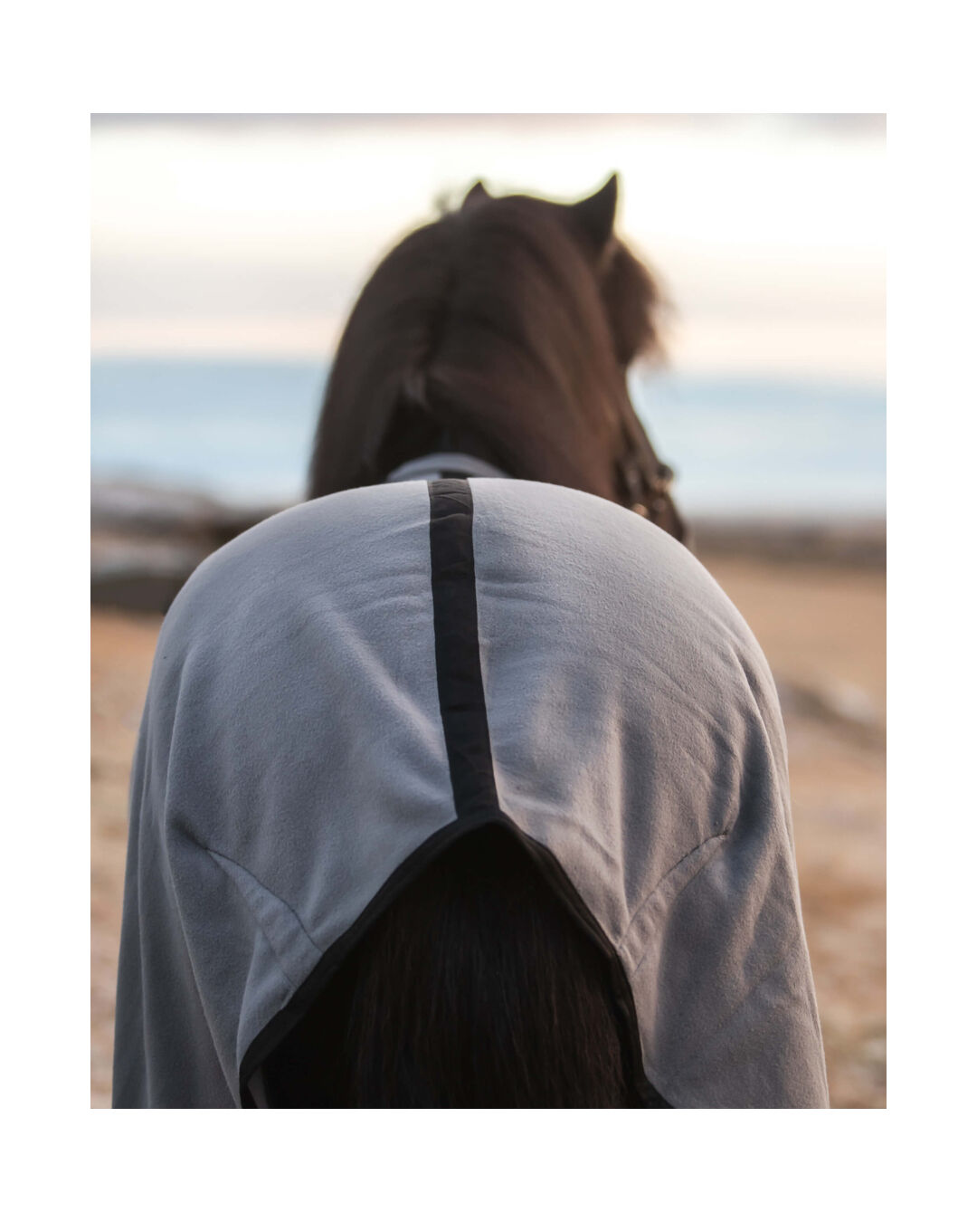Diese Decke ist aus einem atmungsaktiven und feuchtigkeitstransportierenden Fleece gefertigt, welches sicherstellt, dass dein Pferd nach dem Training oder dem Waschen schnell trocknen kann, ohne auszukühlen. Der doppelte Brustverschluss, das Schweifband und die weiche Polsterung im Widerristbereich garantieren dabei einen sicheren und bequemen Sitz.