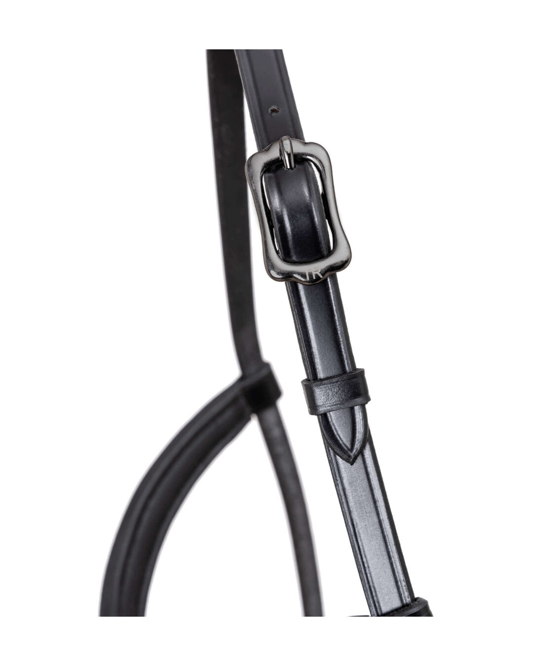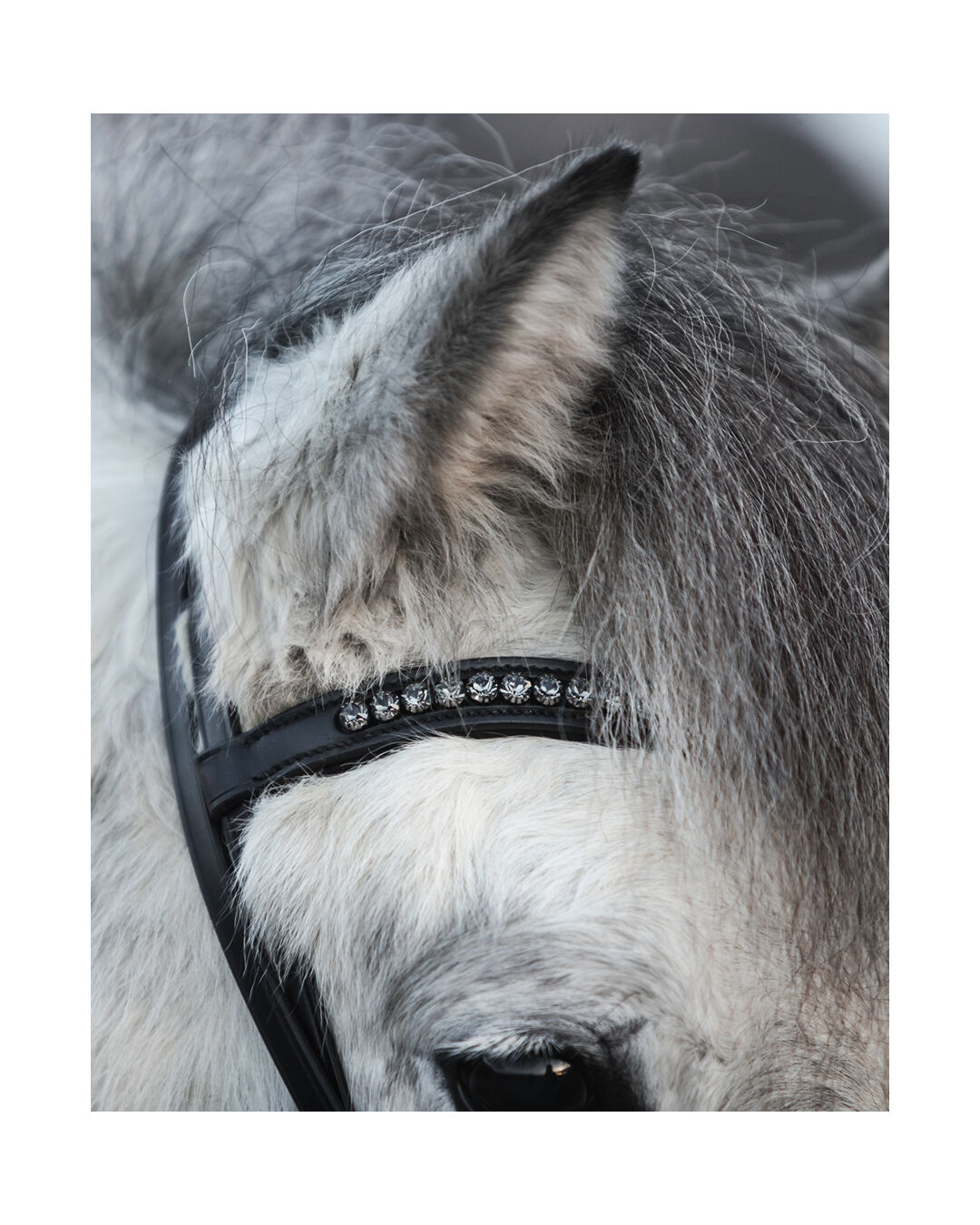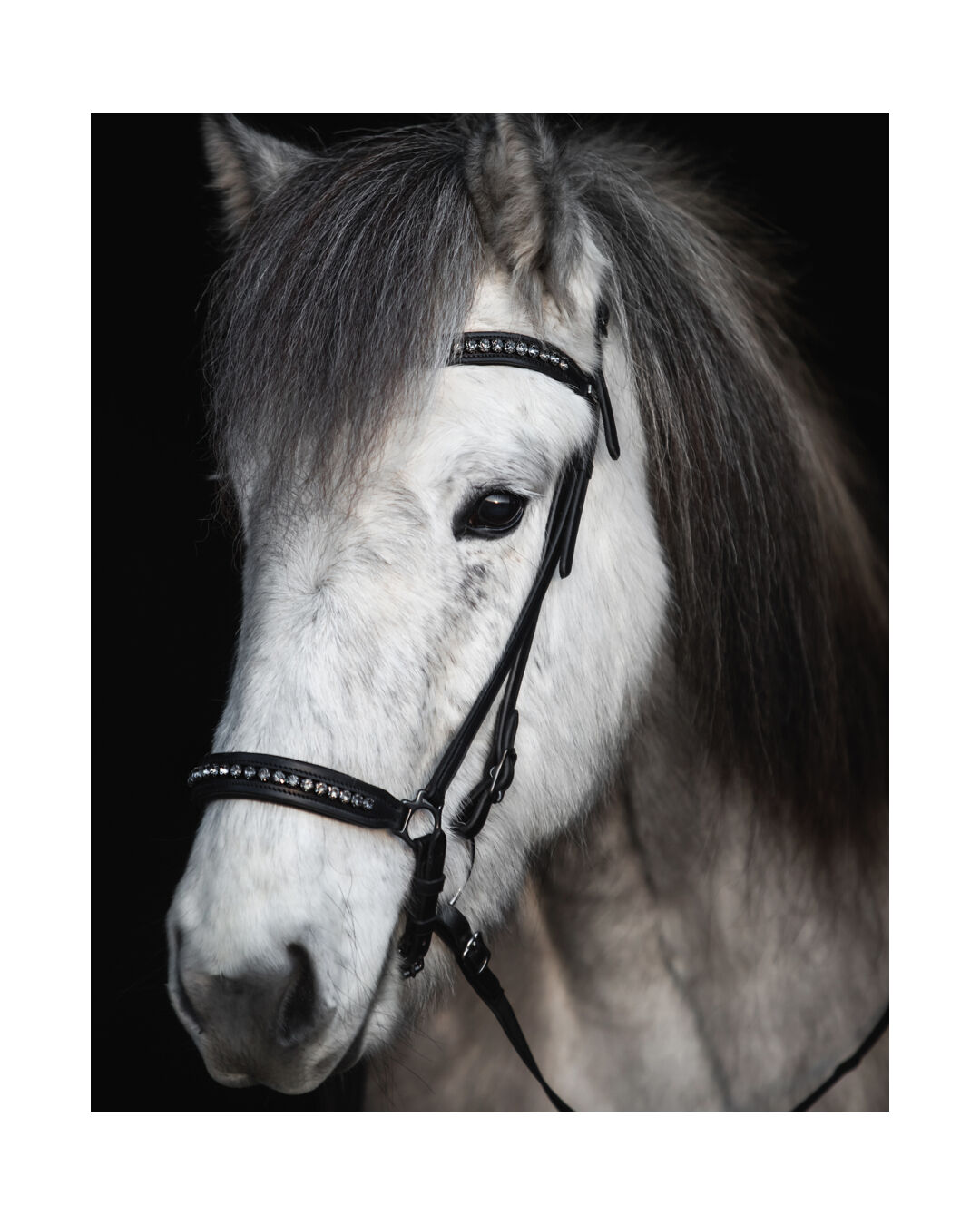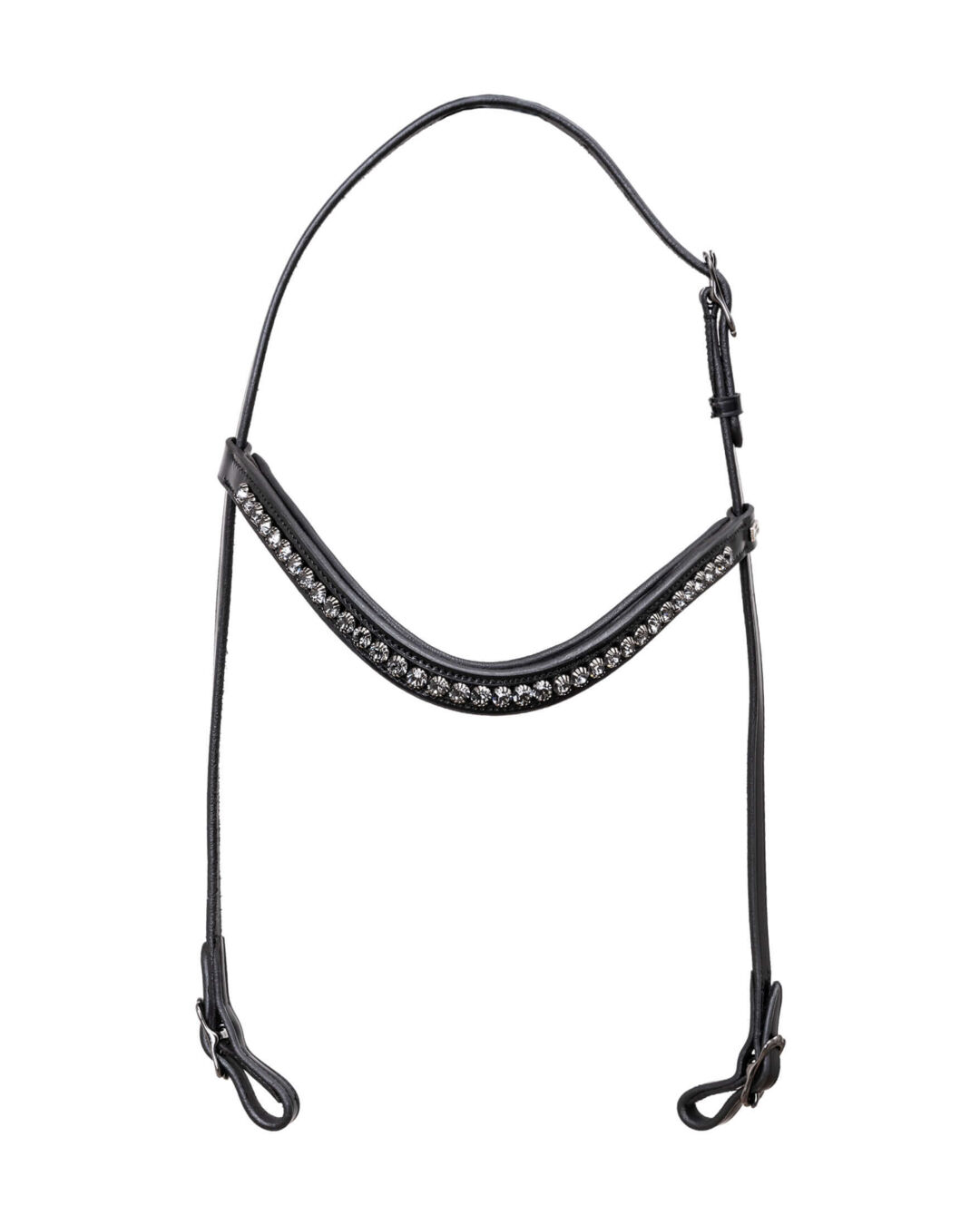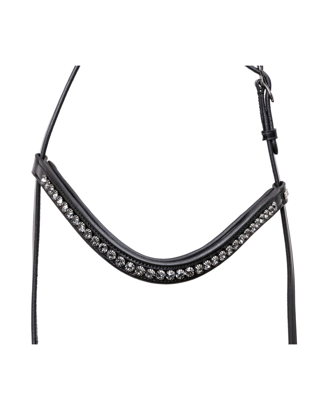 Das Kopfstück Diamond von Topreiter ist aus feinstem Leder gefertigt und mit glänzenden anthrazitfarbenen Strasssteinen besetzt ist.