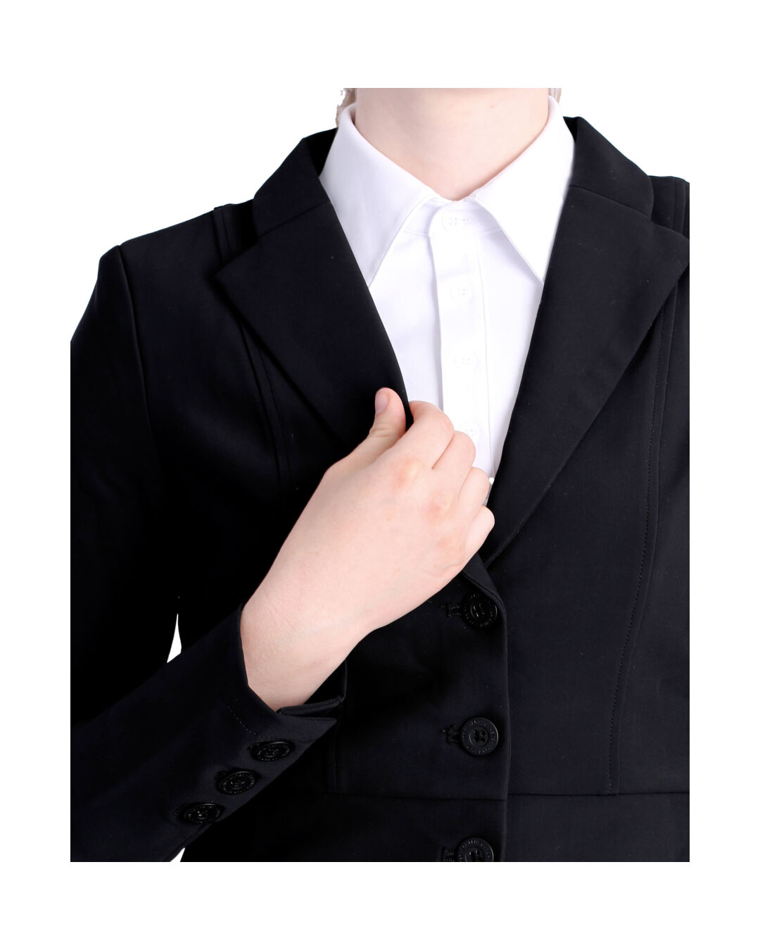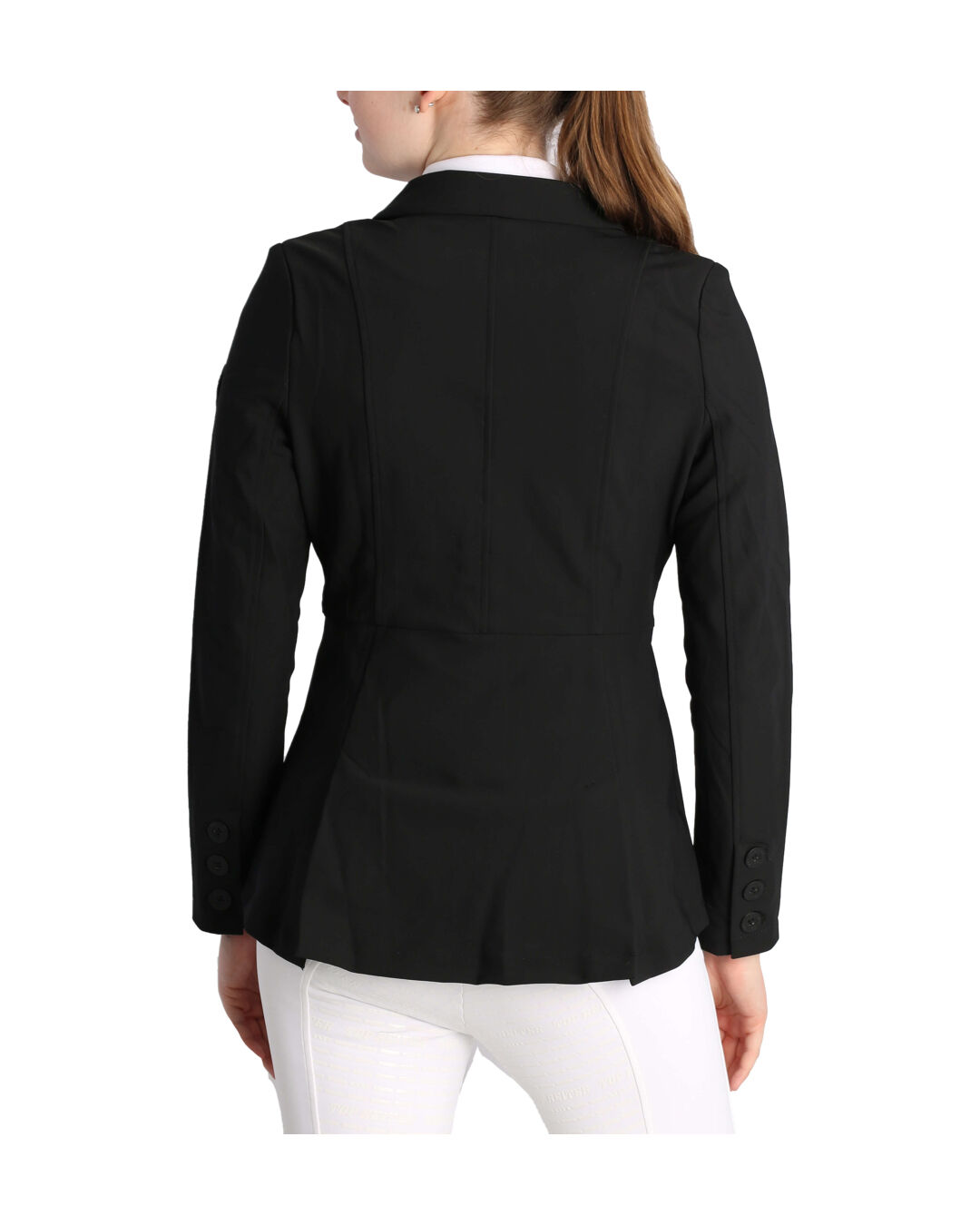 Dieses schwarze Jacket kombiniert eine elegante Passform mit einem luxuriösen Look und bietet gleichzeitig herausragenden Komfort und Bewegungsfreiheit. Dank des superweichen, leichten und atmungsaktiven Stoffs, ausgestattet mit Vier-Wege-Stretch und feuchtigkeitsableitenden Eigenschaften, wirst du die Freude am Reiten neu entdecken.