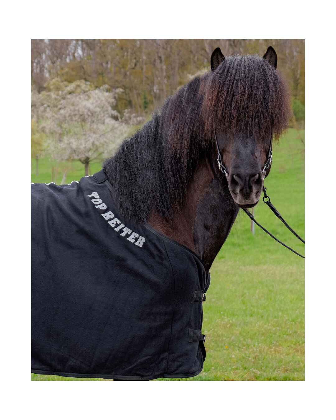 Mit dem charakteristischen Topreiter Logo am Hals und entlang der Wirbelsäule besticht diese Decke nicht nur durch ihr Aussehen, sondern auch durch ihre ausgezeichnete Feuchtigkeitsregulation. Ideal für Islandpferde-Enthusiasten und alle, die Wert auf Trockenheit und Komfort für ihr Pferd legen.