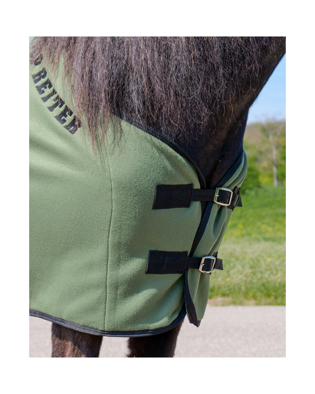Diese Decke ist aus einem atmungsaktiven und feuchtigkeitstransportierenden Fleece gefertigt, welches sicherstellt, dass dein Pferd nach dem Training oder dem Waschen schnell trocknen kann, ohne auszukühlen. Der doppelte Brustverschluss, das Schweifband und die weiche Polsterung im Widerristbereich garantieren dabei einen sicheren und bequemen Sitz.