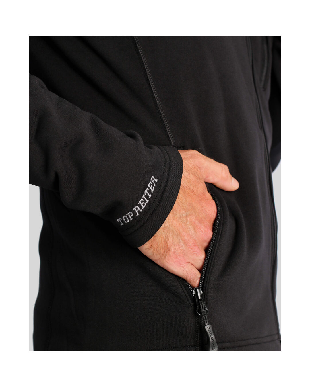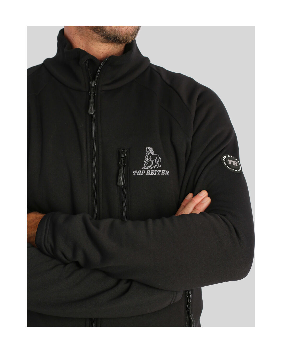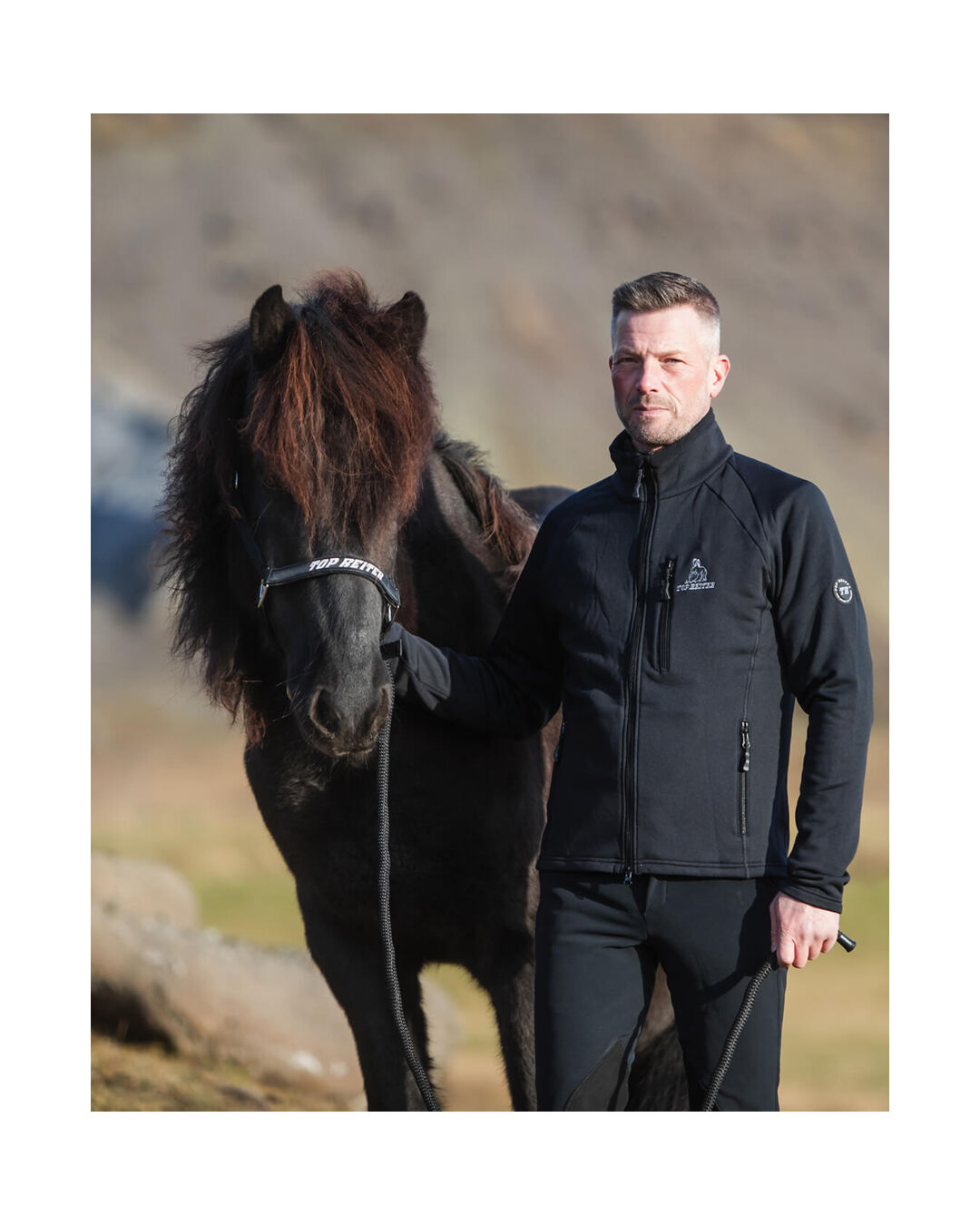 Entdecke die Fleecejacke Ómur von Topreiter, die perfekte Mischung aus Stil und Funktionalität für den modernen Reiter. Diese leichte, figurnahe Herrenjacke aus schwarzem Technostretch-Material ist sowohl als Unter- als auch als Überjacke ideal geeignet.
