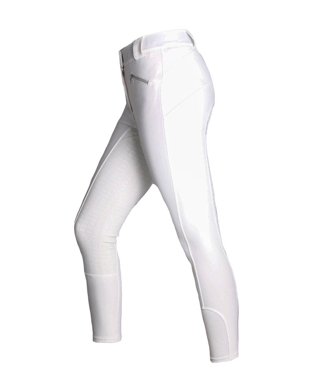 Diese Turnier-Reithose setzt neue Standards im Bereich des Reitkomforts und der Mode. Ihr hoher, breiter Bund, ausgestattet mit praktischen Gürtelschlaufen und einem zuverlässigen Reißverschluss, sichert eine optimale Passform und schafft eine edle Optik. Ein Vollbesatz aus Silikon, gepaart mit hochwertigem, technischem Stoff und Abschlüssen aus Lycra an den Knöcheln, garantiert sicheren Halt und unübertroffenen Tragekomfort.